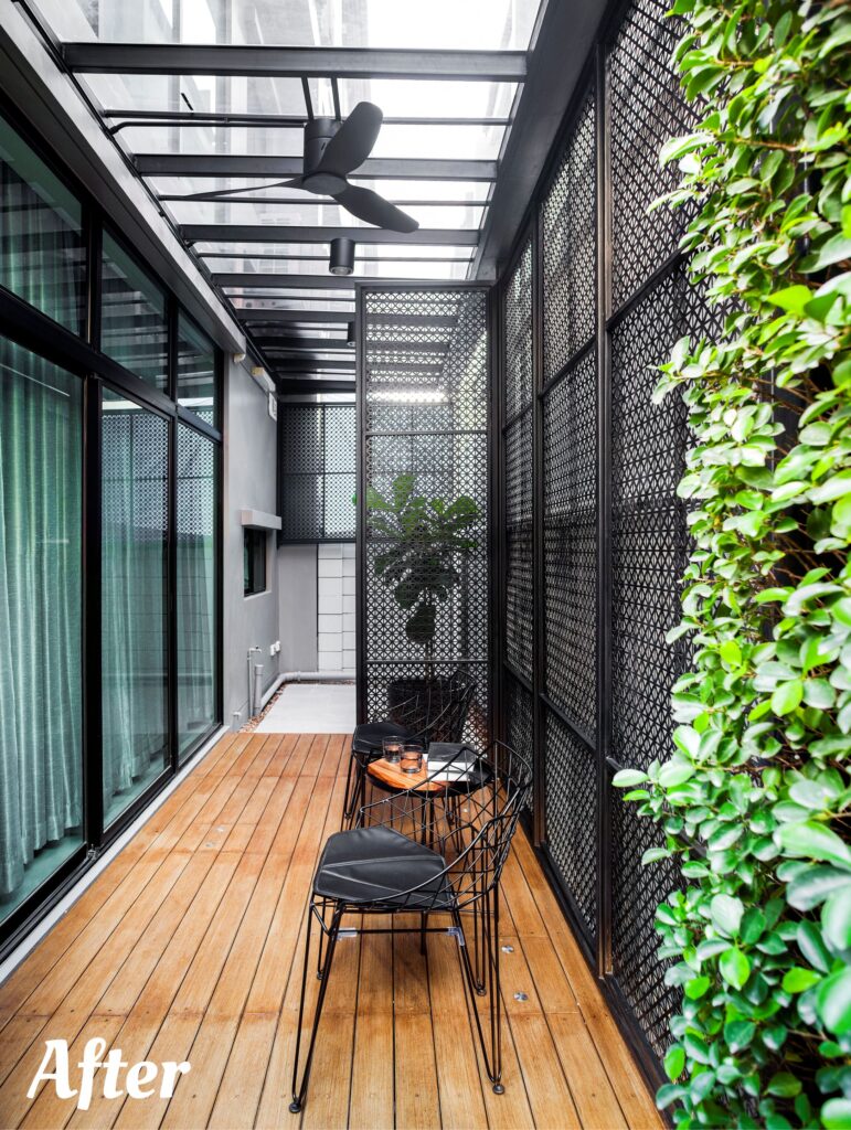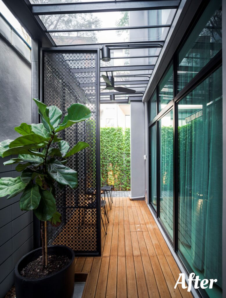 หนึ่งในวิธีป้องกันปัญหานี้ก็คือการต่อเติมพื้นที่แคบ ๆ หลังบ้านนั้นให้กลายเป็นมุมพักผ่อนนั่นเอง เช่นเดียวกับผลงานการต่อเติมบ้านจากทีมงาน กิ่ง ก้าน ใบ ที่เรานำมาฝากกันในวันนี้ครับ เป็นผลงานการต่อเติมที่มีชื่อว่า The Chic Black : สวนขนาดเล็กแต่ฟังก์ชันไม่เล็ก