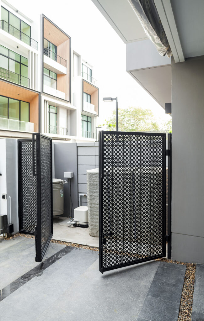 ย้ายถังเก็บน้ำจากหลังบ้านมาไว้ด้านหน้าเพื่อให้ มีพื้นที่ด้านซักล้างกว้างขึ้น ถูกสกรีนด้วยผนังลายฉลุ ที่สามารถเป็นประตูเปิด-ปิดที่ง่ายต่อการใช้งายและดูสวยไปอีกแบบ