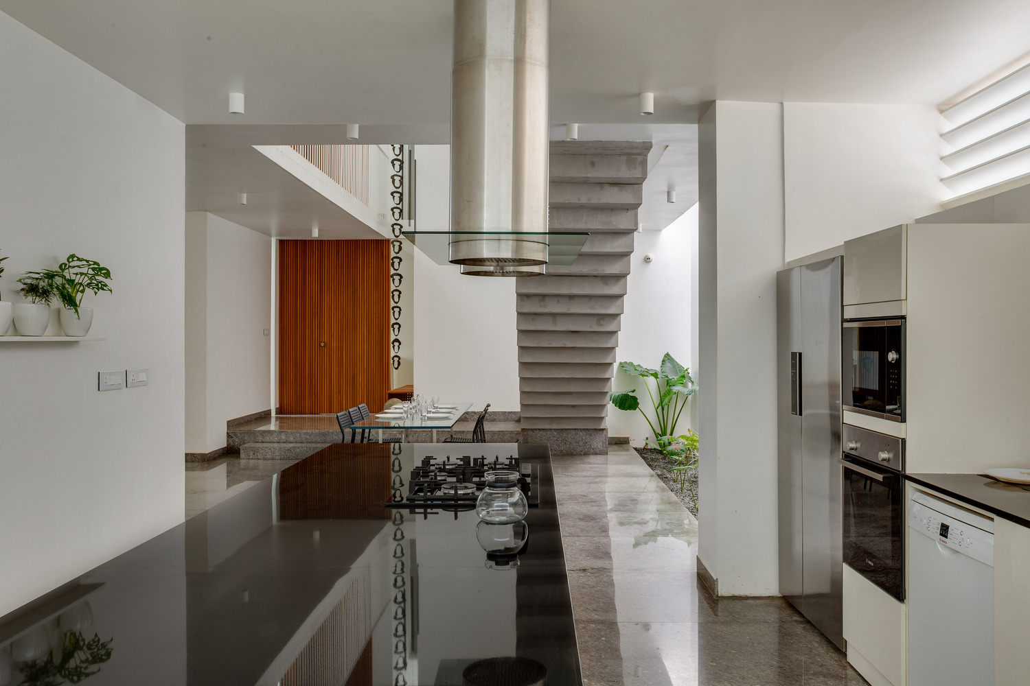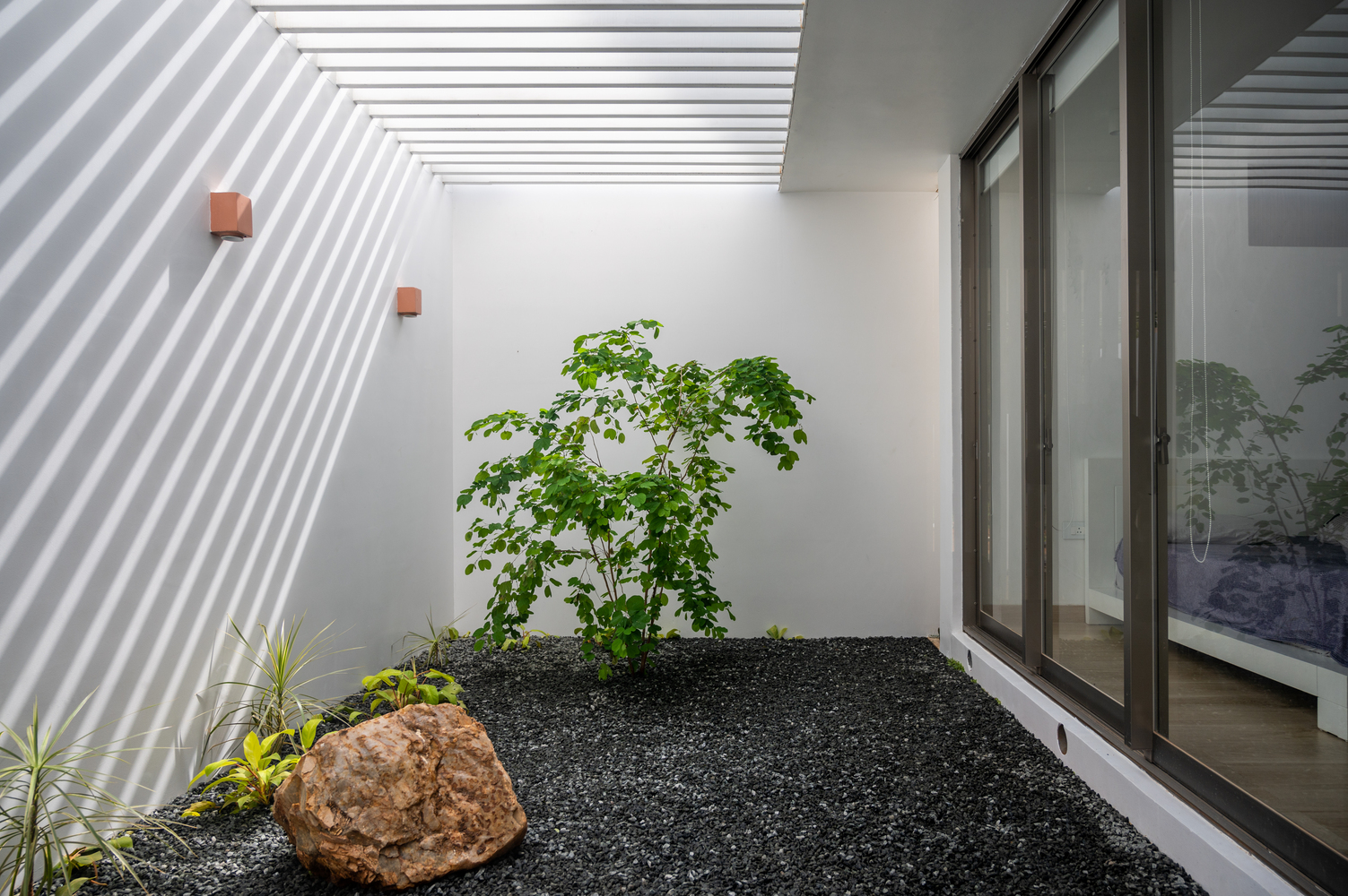 ภายในบ้าน สถาปนิกออกแบบให้ตัวบ้านมีพื้นที่รับแสง และช่องลมเอาไว้หลายจุด ทำให้บ้านถ่ายเทอากาศได้ดี จึงช่วยให้บ้านเย็นสบายได้ทั้งวัน