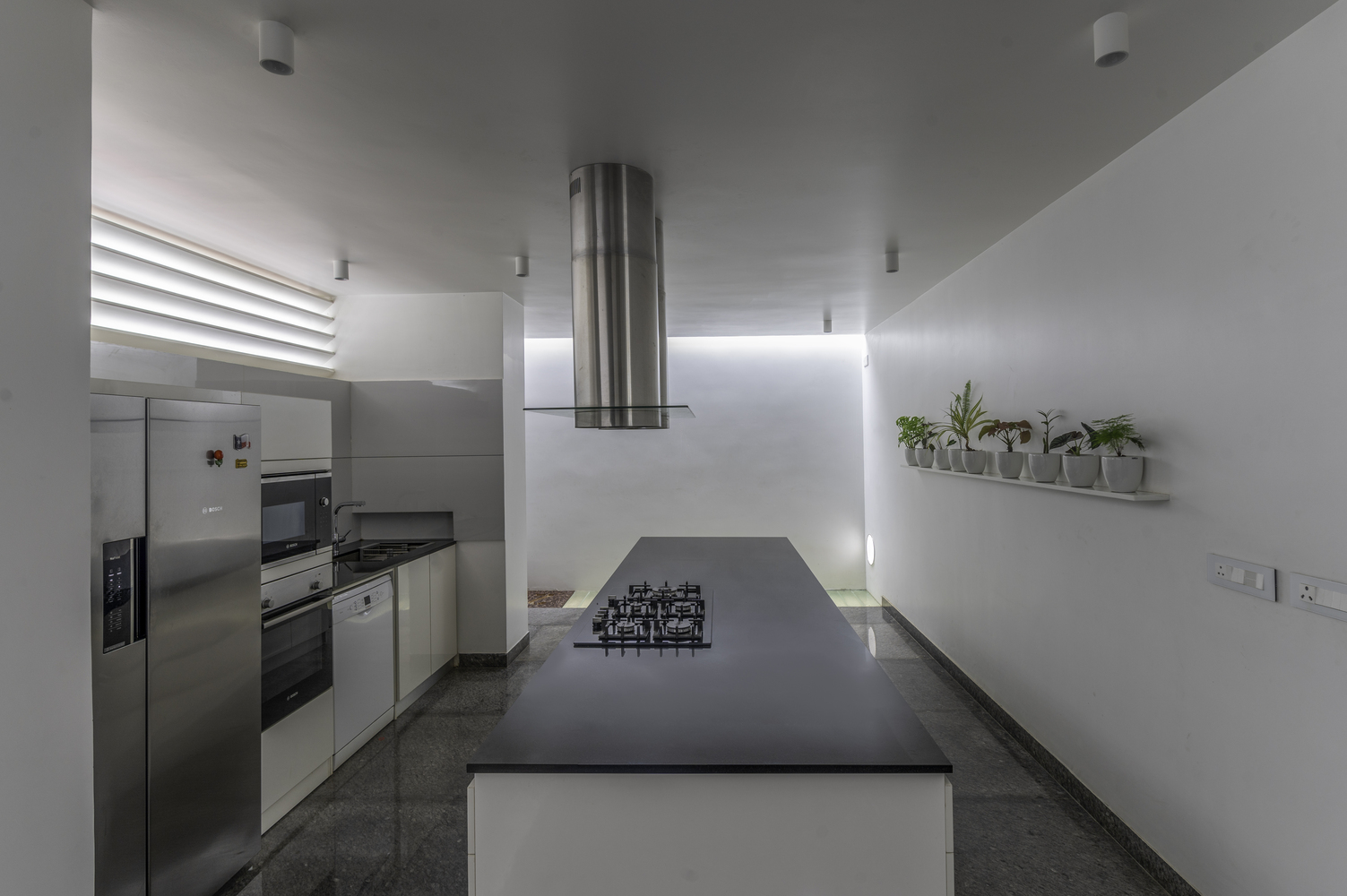 มุมนี้เป็นพื้นที่ภายในห้องครัวที่ถูกตกแต่งในสไตล์โมเดิร์น จึงมีองค์ประกอบต่าง ๆ ที่ทันสมัย สะดวกและตอบโจทย์การทำอาหารของคนยุคใหม่