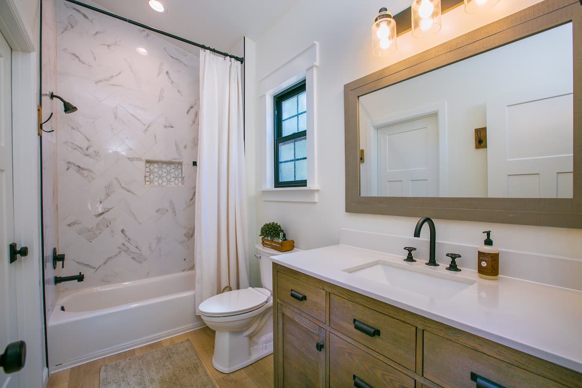 เช่นเดียวกันกับห้องน้ำ ที่ภายในจะมีพื้นที่กว้างเป็นพิเศษ จึงสามารถแบ่งพื้นที่การใช้งานแบบแห้งและแบบเปียกเอาไว้ได้อย่างเป็นสัดส่วน