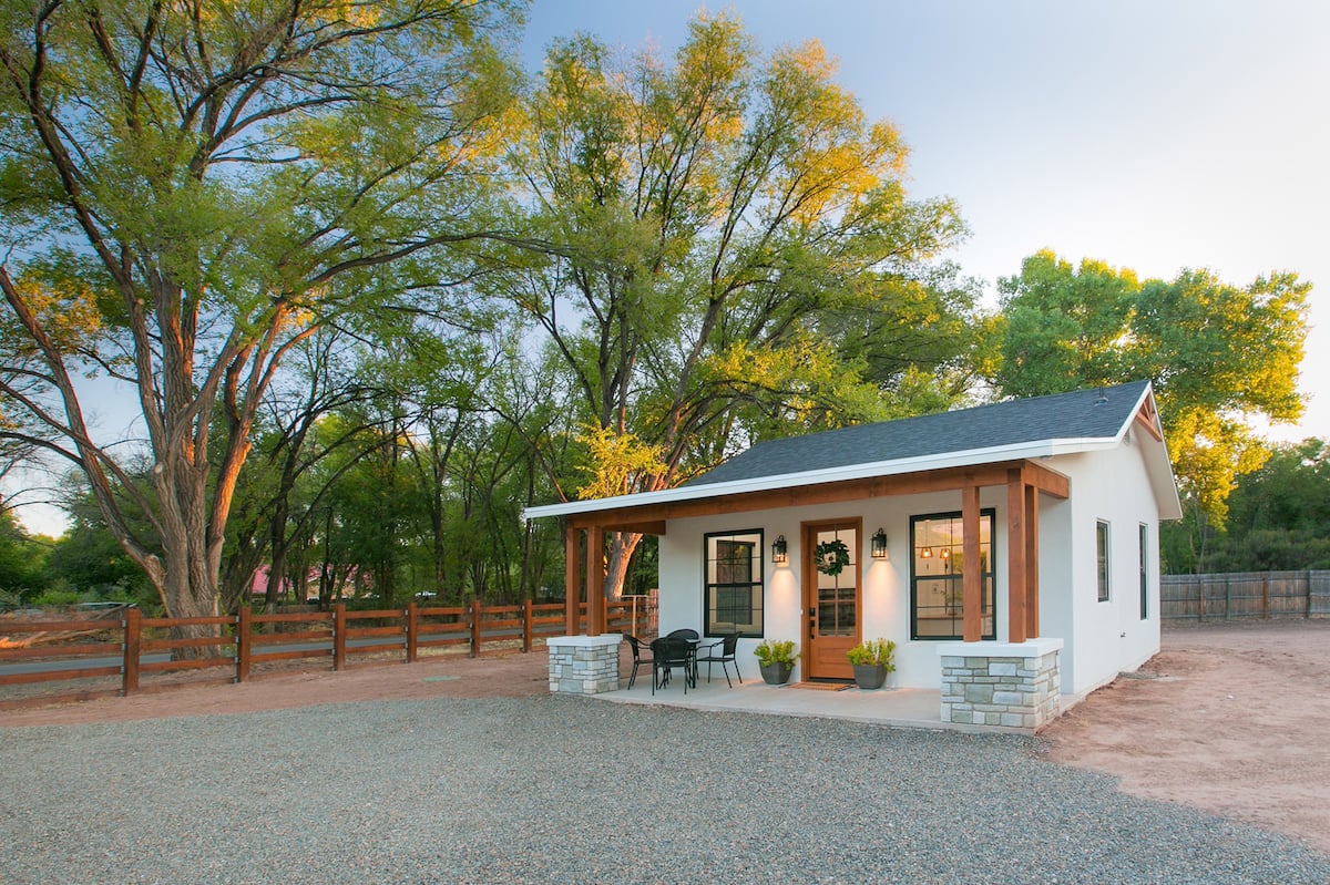 บ้านหลังนี้จะมีขนาดชั้นเดียว ตัวบ้านมีรูปทรงที่เรียบง่าย งานหลังคาจะเป็นแบบทรงหน้าจั่วที่มีชายคายื่นออกมาเหนือเฉลียง ด้านการตกแต่งนั้น ผนังภายนอกจะมีโทนสีขาวที่ผสานกันดีกับองค์ประกอบไม้สีน้ำตาล รวมถึงหลังคาในโทนสีฟ้า