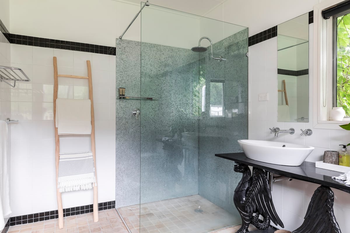 ทางด้านของห้องน้ำ ก็เป็นอีกพื้นที่หนึ่งที่มีการออกแบบเรียบง่าย บริเวณโดยรอบจะมีลักษระที่โปร่งโล่ง ถ่ายเทอากาศได้สะดวก ในขณะที่ภายในเองก็มีฟังก์ชันการใช้งานที่ครบครัน
