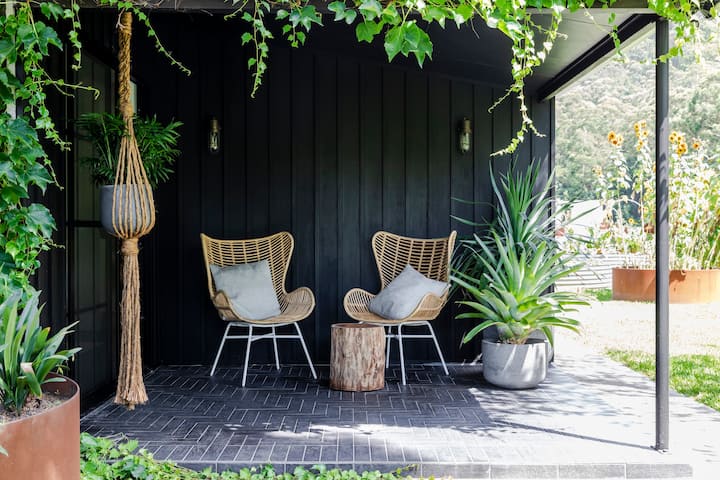 สีดำเป็นโทนสีที่เรียบง่าย ให้ความรู้สึกที่สงบ สีดำจึงถูกนำมาใช้ในการทาสีอาคารต่าง ๆ แต่ข้อเสียของสีดำ คือ การที่จะดูดแสงเอาไว้ทำให้บ้านร้อน นั่นจึงทำให้เรามักไม่ค่อยพบเห็นบ้านสีนี้ในเมืองร้อน แต่สำหรับเมืองหนาวแล้วกลับเป็นที่นิยมไม่น้อยเลย