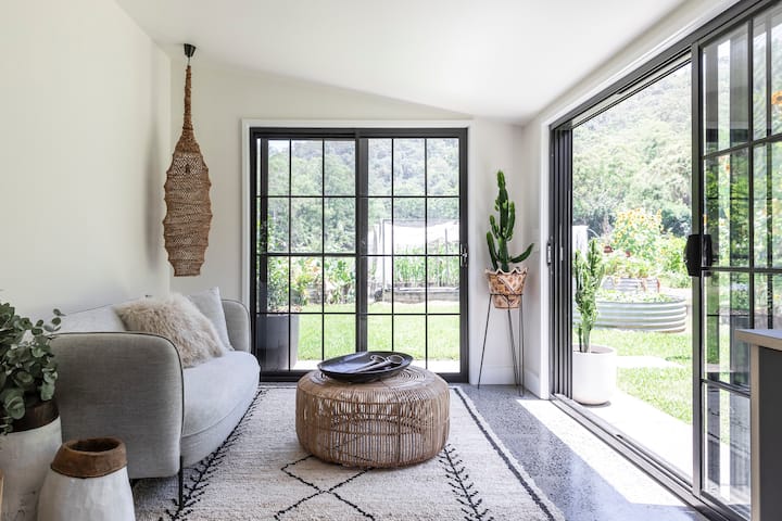พื้นที่ภายในบ้านถูกออกแบบเน้นความโปร่งสบาย ประตูแบบบานเลื่อนสามารถเปิดกว้างให้สามารถสัมผัสกับสนามหญ้าและอากาศที่สดชื่นจากภายนอกได้เป็นอย่างดี