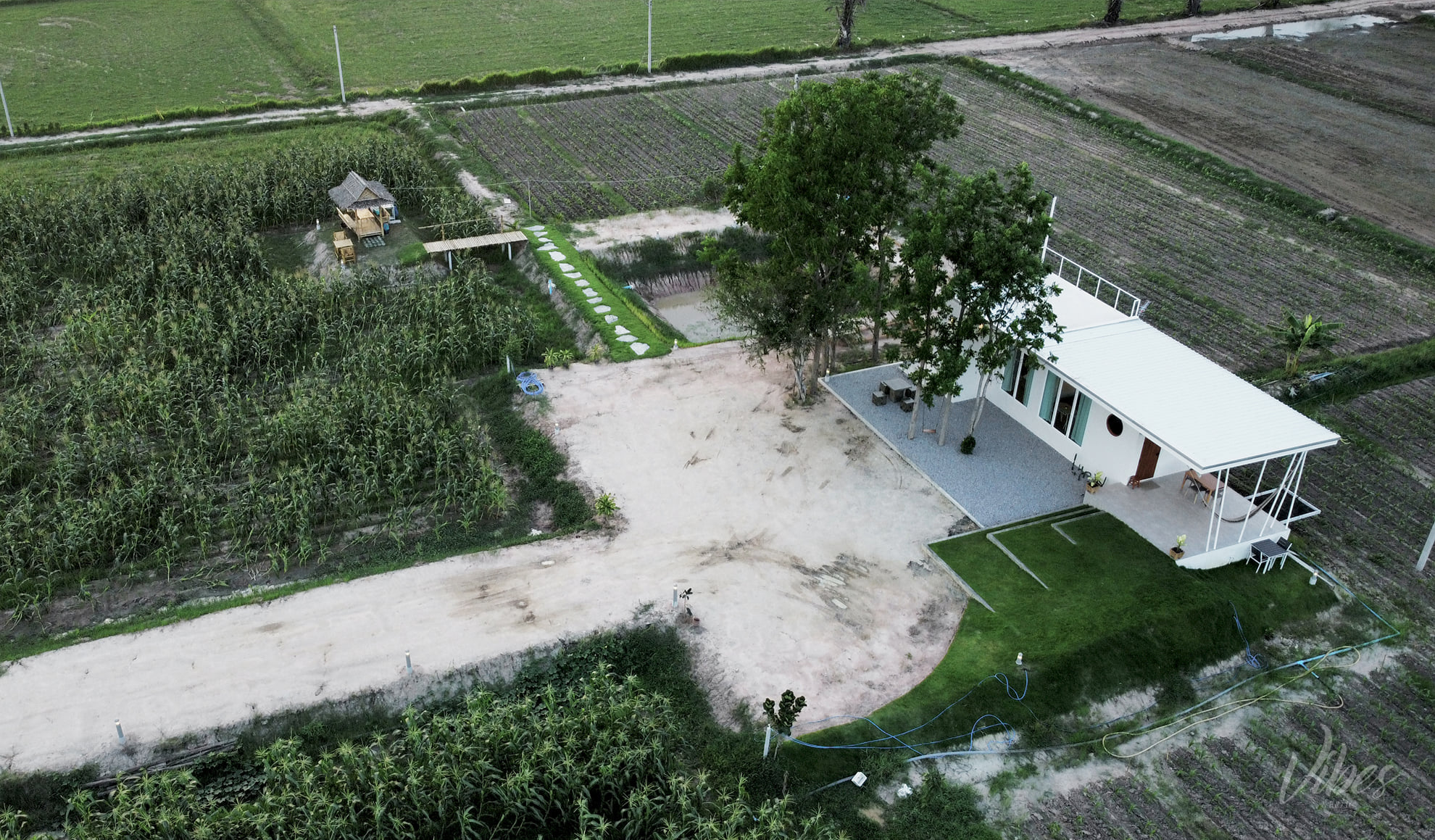 บ้านหลังเล็กที่ถูกห้อมล้อมไปด้วยธรรมชาติ ด้านข้างบ้านมีการจัดสรรให้เป็นพื้นที่ปลูกผักสวนครัวและเลี้ยงปลา เหมาะกับการใช้ชีวิตอย่างเรียบง่ายและพักผ่อนกับครอบครัวเป็นอย่างยิ่ง