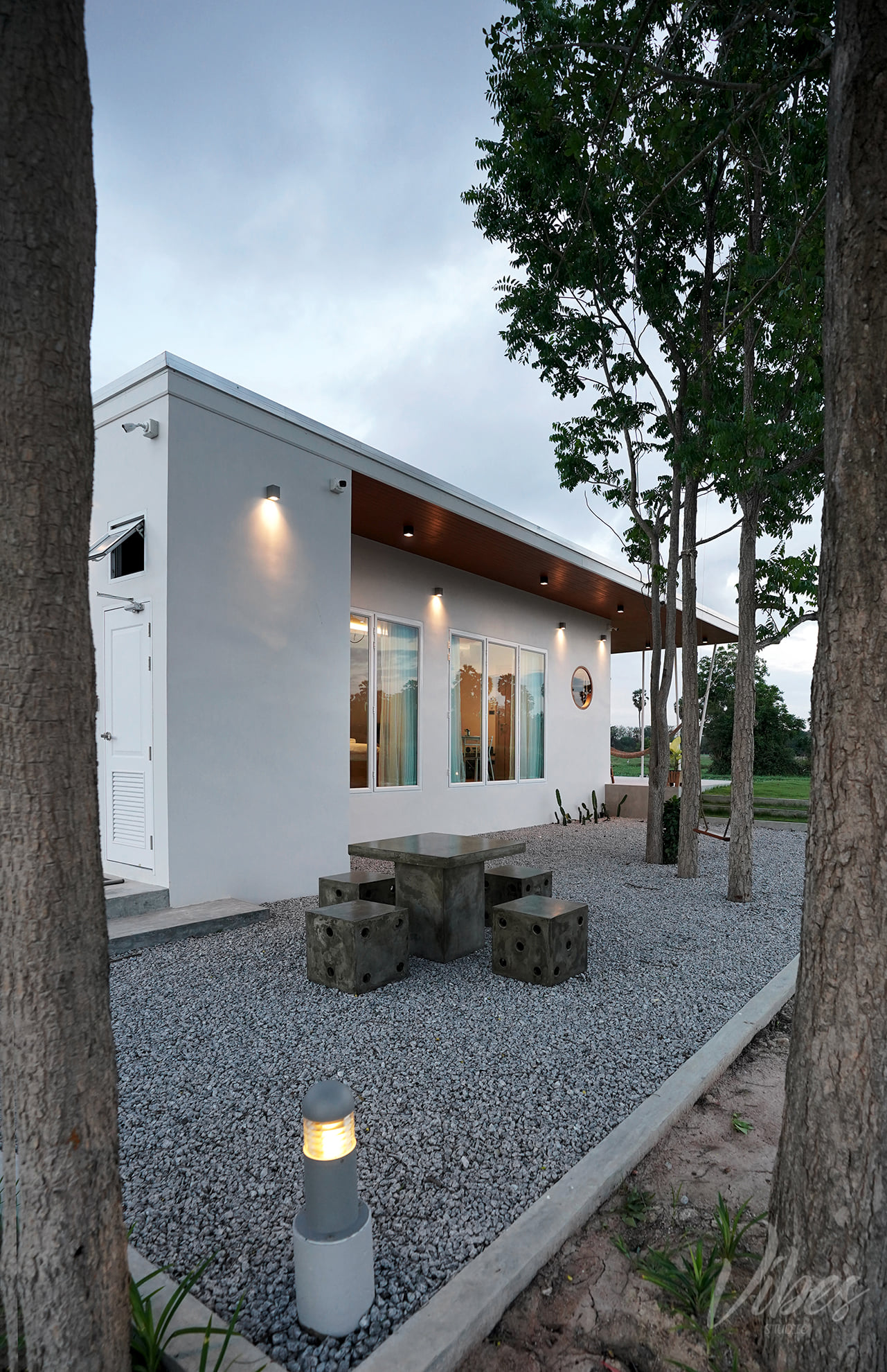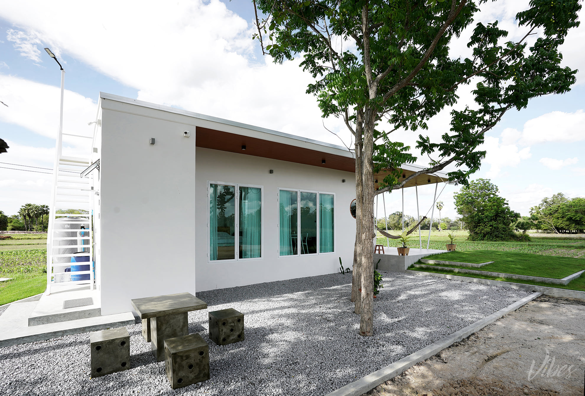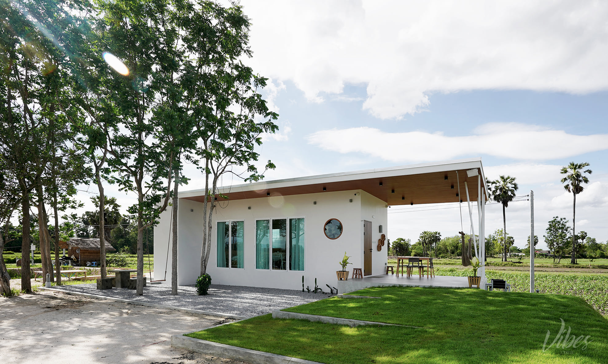 บ้านหลังเล็กที่เราจะพาไปชมกันในวันนี้ เป็นบ้านพักตากอากาศที่ตั้งอยู่ในอำเภอบ้านบึง จังหวัดชลบุรี ผลงานการออกแบบโดสถาปนิกจาก Vibes Studio ในสไตล์ ‘Modern Minimalist’