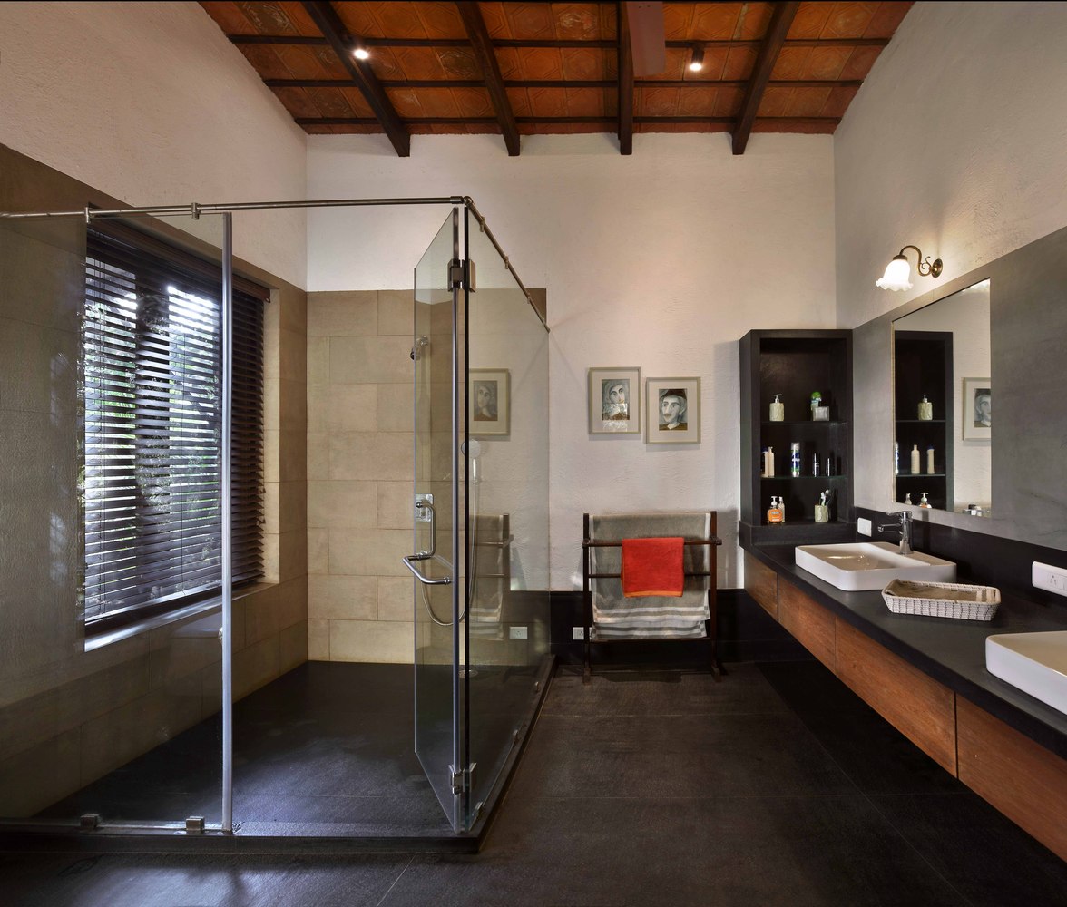 เช่นเดียวกับพื้นที่อื่น ๆ ของบ้าน ภายในห้องน้ำเองก็มีพื้นที่กว้างขวาง แถมยังตกแต่งได้อย่างสวยงามอีกด้วย พื้นที่อาบน้ำจะกั้นเป็นห้องกระจกที่มีพื้นที่ค่อนข้างกว้างเลยทีเดียว พื้นที่ส่วนอื่น ๆ ก็จัดองค์ประกอบให้ใช้สอยได้อย่างสะดวกเช่นกัน