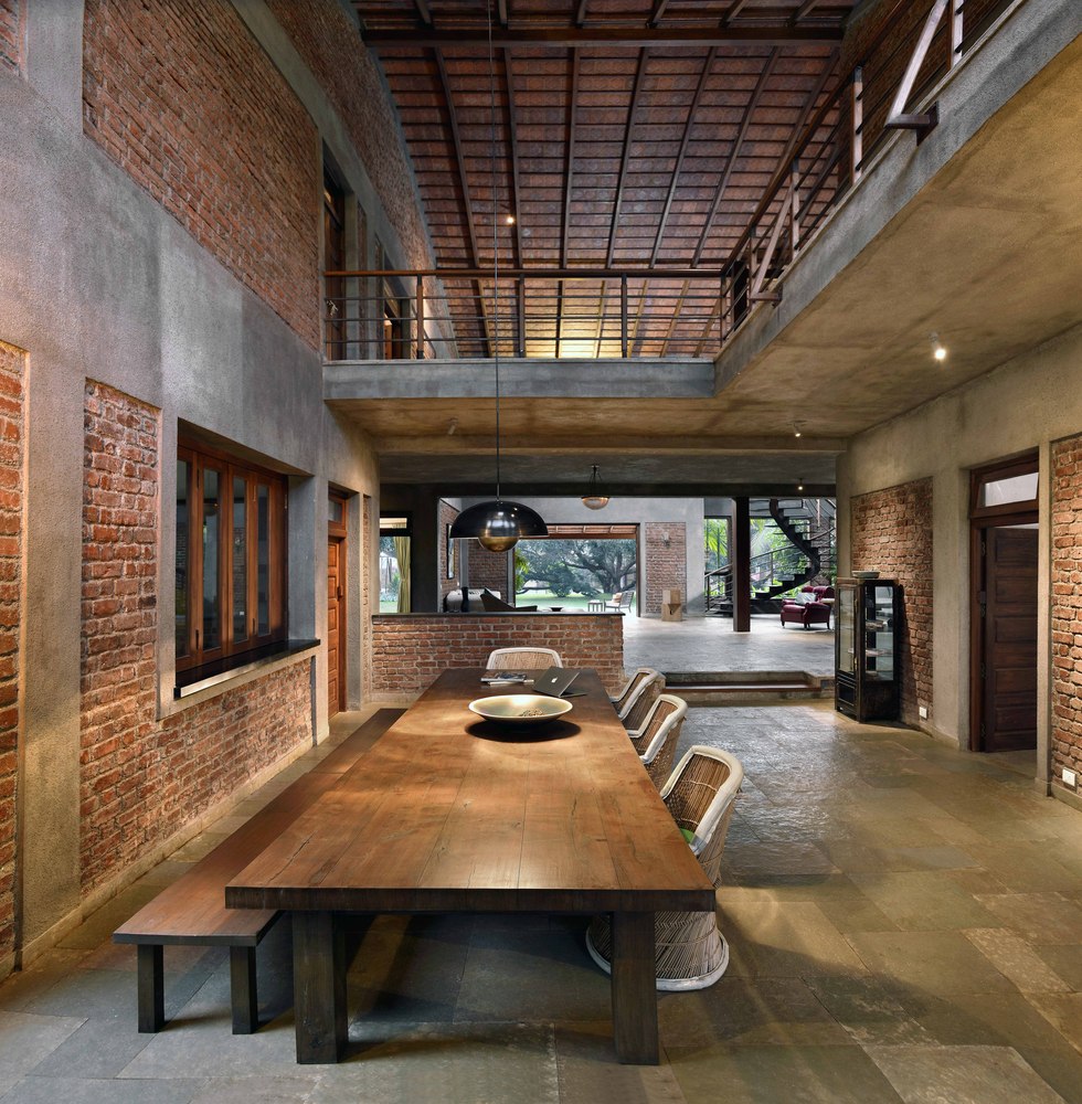 ภายในบ้านจะมีการออกแบบเปิดโล่ง ตัวโครงสร้างจะเผยให้เห็นายละเอียดของวัสดุแบบดิบเปลือย จึงให้ความงามที่สะท้อนผ่านผนังอิฐและโครงไม้อย่างเด่นชัด