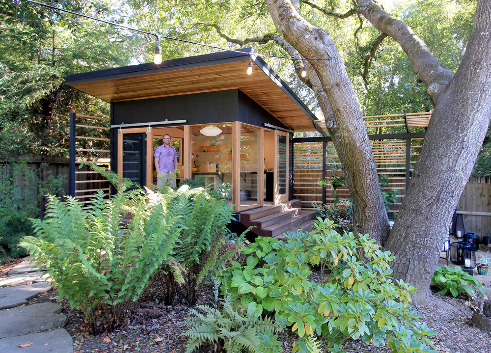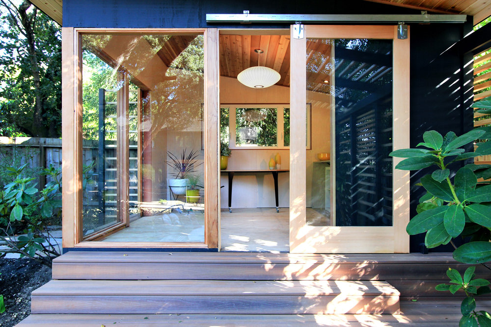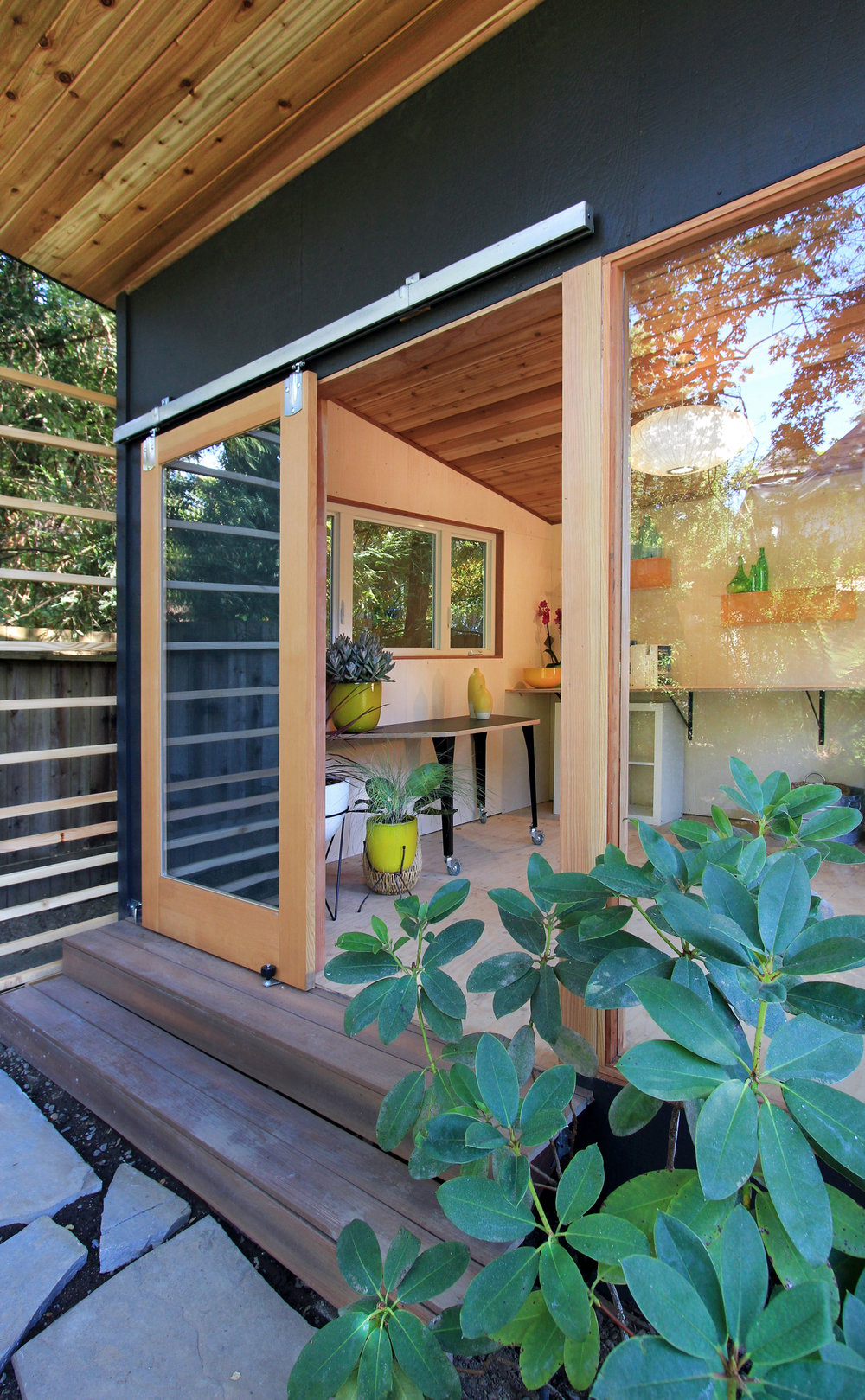 อาคารไม้หลังนี้สร้างขึ้นจากไม้ซีดาร์ มีรูปทรงสี่เหลี่ยมแบบโมเดิร์น หลังคาเป็นแบบทรงเพิงหมาแหงน ที่ผนังภายนอกจะทาด้วยสีดำ รวมถึงได้โทนสีน้ำตาลมาจากไม้ธรรมชาติอีกด้วย ด้านนอกตัวอาคารจะห้อมล้อมไปด้วยต้นไม้น้อยใหญ่ที่ให้บรรยากาศที่ผ่อนคลาย เหมาะกับการทำงานเงียบ ๆ คนเดียว