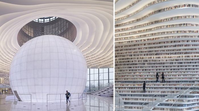 ห้องสมุดแห่งนี้มีทำเลที่ตั้งอยู่ใกล้กับเมืองปักกิ่ง ประเทศจีน เป็นผลงานการออกแบบจากบริษัทสัญชาติดัตช์ MVRDV ที่เปลี่ยนพื้นที่ขนาดใหญ่ให้กลายเป็นห้องสมุดน่าใช้งาน ด้วยดีไซน์สุดล้ำ โดยผนังภายในทั้งหมดจะถูกตกแต่งด้วยโทนสีขาว คล้ายกับสีของโบสถ์ รายล้อมไปด้วยชั้นหนังสือที่รวบรวมมาจากทั่วทุกมุมโลก พร้อมจัดเรียงเป็นหมวดหมู่เอาไว้ เพื่อให้ผู้เข้าชมสามารถเข้าถึงหนังสือได้โดยง่าย