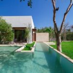ด้วยพื้นที่ที่จำกัดนั้น แบบบ้านทาวน์เฮ้าท์ อันดับแรกคือการจัดบริบท ด้วยลานคอนกรีตภายในรั้วบ้าน สร้างแบบโล่งๆ เพิ่มพื้นที่ใช้สอย เข้ากับสวนหย่อมแบบสมัยใหม่ ใช้รูปทรงเรขาคณิต ตกแต่งเพียงน้อยกับไม้ยืนต้น ตามฟอร์มโมเดิร์นอีกด้วย