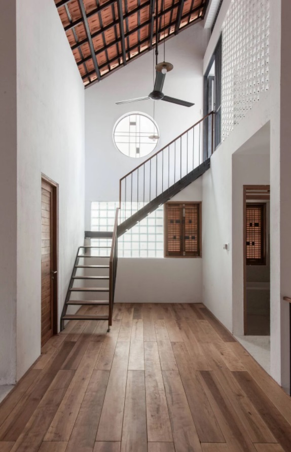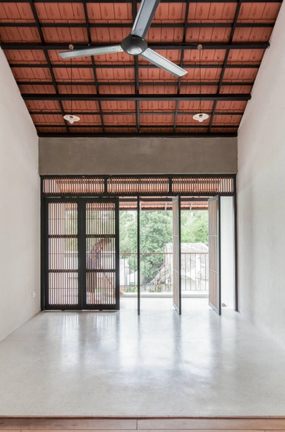 เพดานค่อนข้างสูงโปร่ง ทำให้ภายในบ้านเย็นสบายและรู้สึกโปร่งโล่งไม่อึดอัด