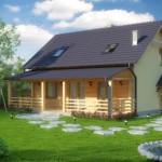 ตัวบ้านโคร้งสร้างไม้ ออกแบบรูปทรงแบบเรียบง่าย ตกแต่งด้วยผนังจากไม้ ใช้หลังคาทรงจั่วเรียบง่ายที่สุด เหมาะกับสภาพอากาศในบ้านเราอีกด้วย