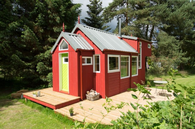 บ้านโครงสร้างไม้ หลังเล็กๆ ออกแบบรูปทรงที่เรียบง่ายๆ ไอเดียที่เป็นบ้านสวน รวมทั้งบ้านรถ ที่มีขนาดเล็กพอที่จะนำรถลากไปไหนต่อไหนได้ และให้มีขนาดที่ 2 คนใช้งานได้จริง ตกแต่งด้วยไม้ หลังคาทรงจั่วน่ารัก