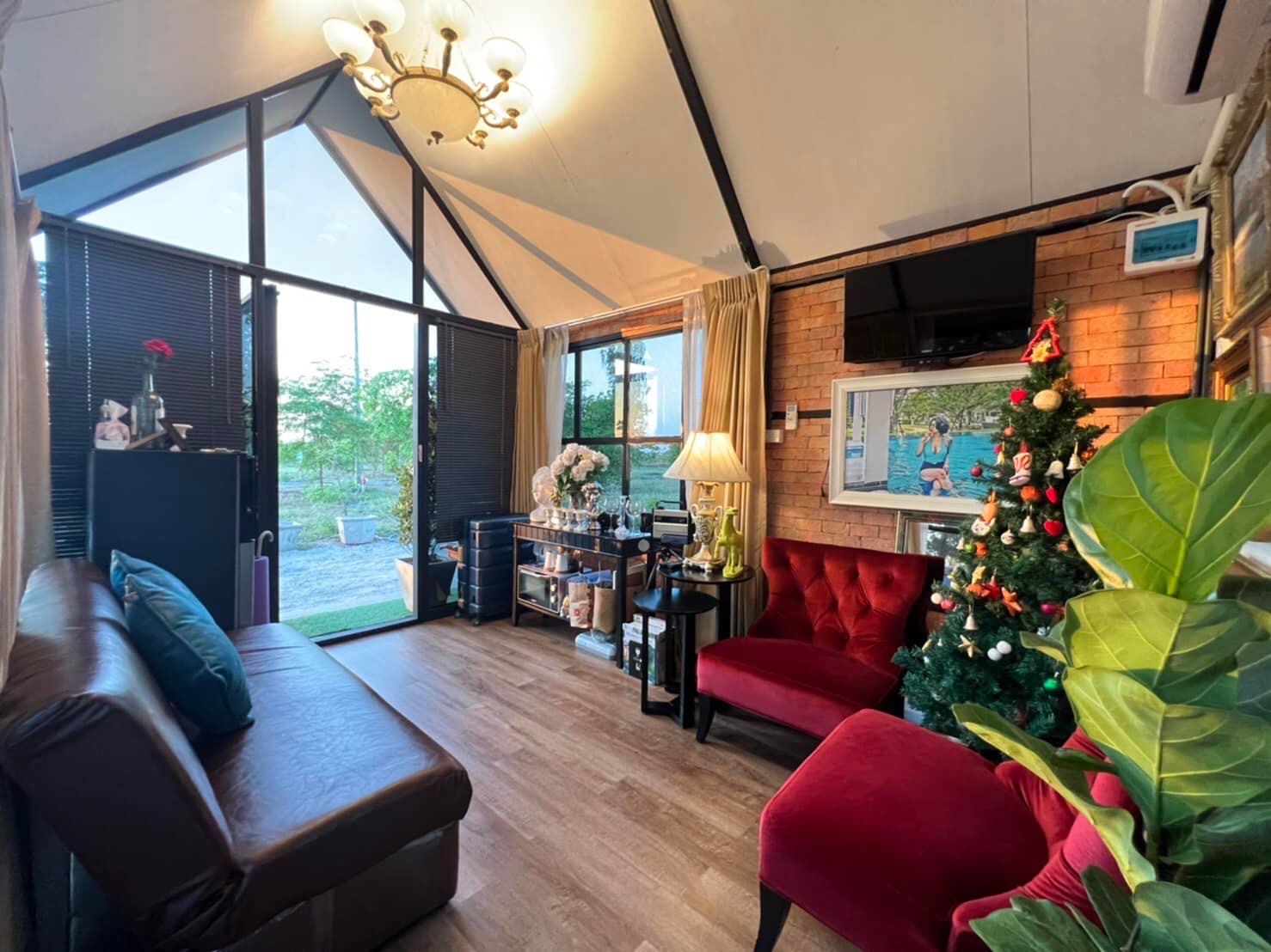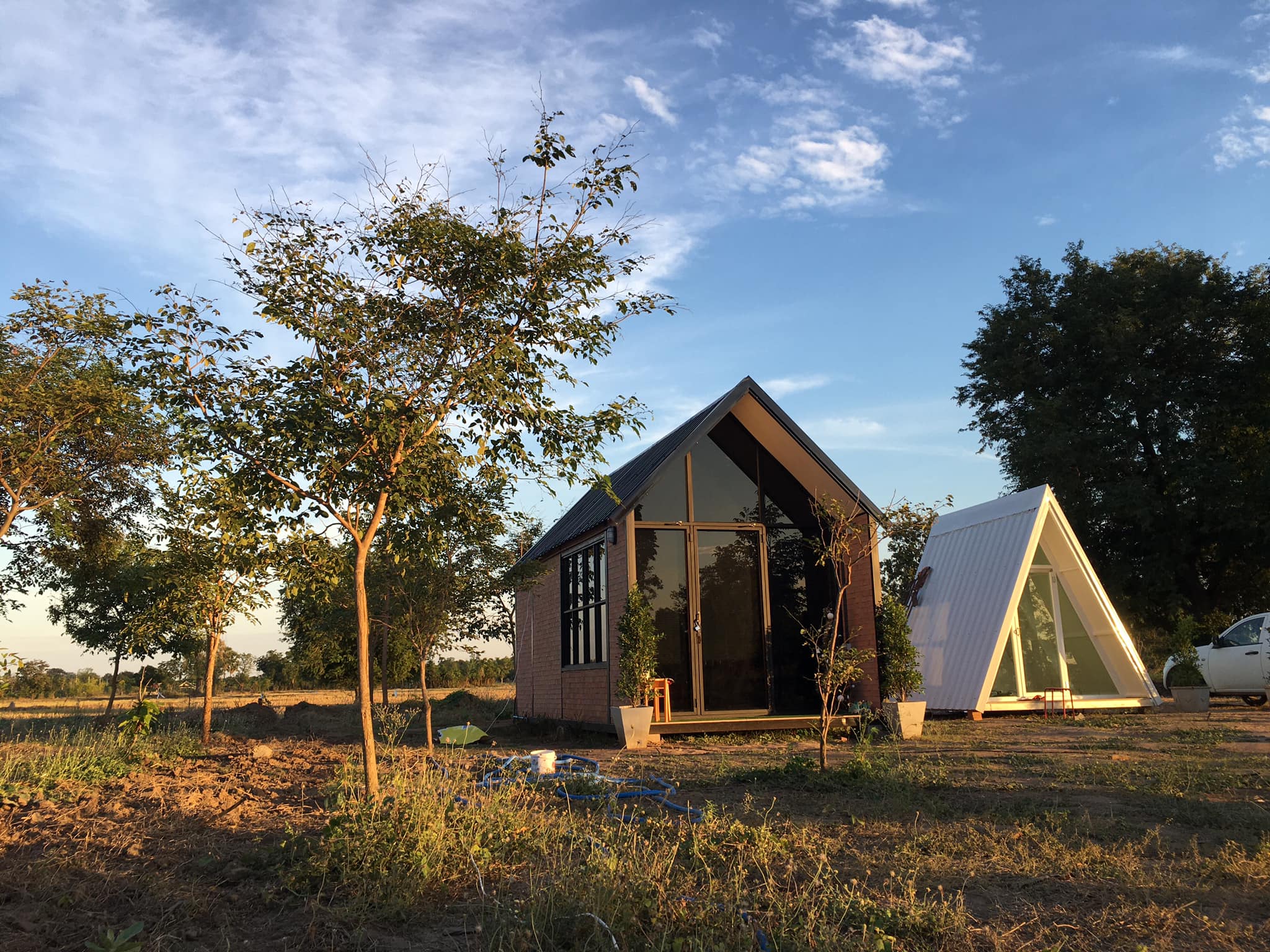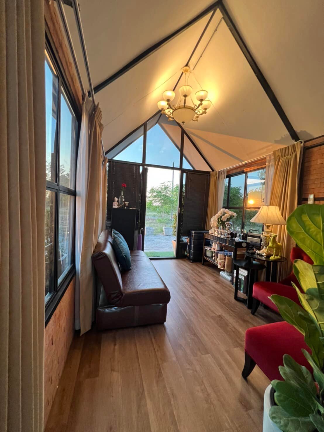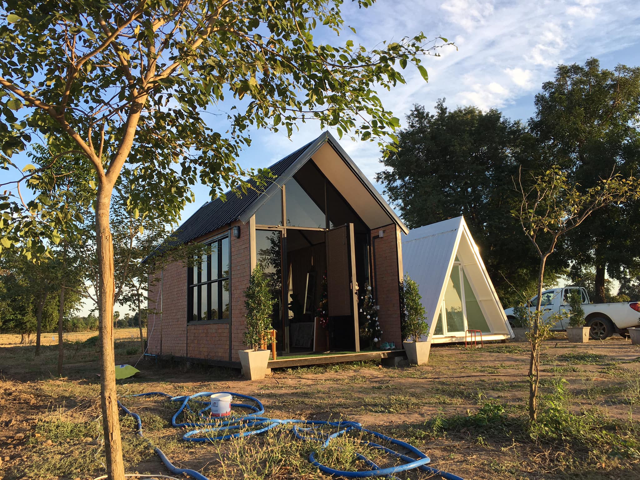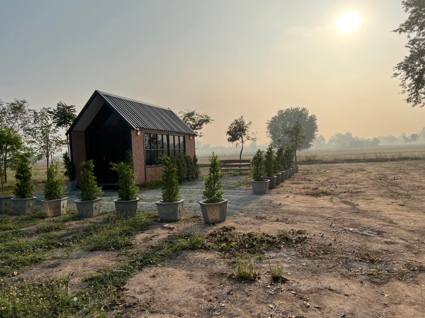 ตัวบ้านตั้งอยู่บนพื้นที่กลางธรรมชาติ มีฉากหลังเป็นทุ่งนาที่สวยงาม บรรยากาศยามเช้าก็ให้แสงแดดอ่อน ๆ ที่ดูสวยงามไม่น้อยเลย