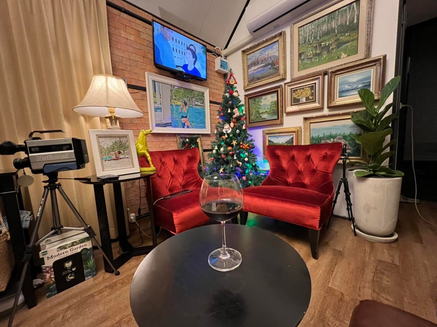 ที่หน้าบ้าน จะมีระเบียงเล็ก ๆ เอาไว้นั่งเล่น ในขณะที่ผนังส่วนนี้จะเป็นกระจกใสทั้งหมด เพื่อเป็นจุดรับแสงสว่างจากภายนอกบ้านนั่นเอง