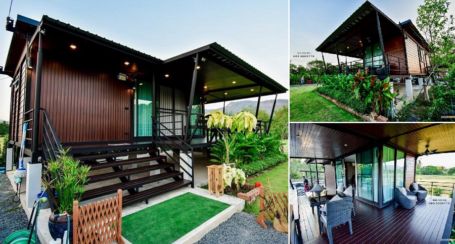 บ้านพักตากอากาศ ประกอบด้วย 1 ห้องนอนใหญ่มีห้องน้ำในตัว มาพร้อมเฉลียงรูปตัวแอลรอบบ้าน เป็นบ้านน็อคดาวน์ขนาดพอเหมาะ ในราคา 650,000 บาท หากเพื่อนๆ คนไหนสนใจ สามารถเข้าชมรายละเอียดเพิ่มเติมหรือสอบถามได้จากลิงค์หรือข้อมูลด้านล่างนี้เลยนะคะ