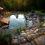 รอบๆ บ้านนั้นเป็นเนินเขา ริมแม่น้ำ มีความลาดเอียงของพื้นที่อยู่ ดูเป็นธรรมชาติแบบสุดๆ ใช้สนามหญ้า และตกแต่งตามธรรมชาติด้วยต้นใหม้ใหญ่ในฉากหลังของบ้าน เปิดมุมมองของตัวบ้านไปทิศทางที่ต่ำกว่า เพื่อการเทควิว
