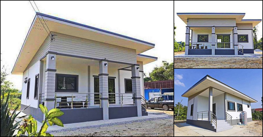 สำหรับบ้านหลังนี้เป้นบ้านโมเดิร์นขนาดชั้นเดียว ฐานของบ้านถูกยกขึ้นต่ำ ตัวบ้านมีรูปทรงที่เรียบง่ายในแบบสี่เหลี่ยม หลังคาของบ้านเลือกใช้แบบทรงเพิงหมาแหงน ทางด้านการตกแต่งนั้นผนังภายนอกบ้านเลือกใช้สีขาวยืนพื้น แซมด้วยสีเทา จึงให้บรรยากาศที่ดูสบายตา