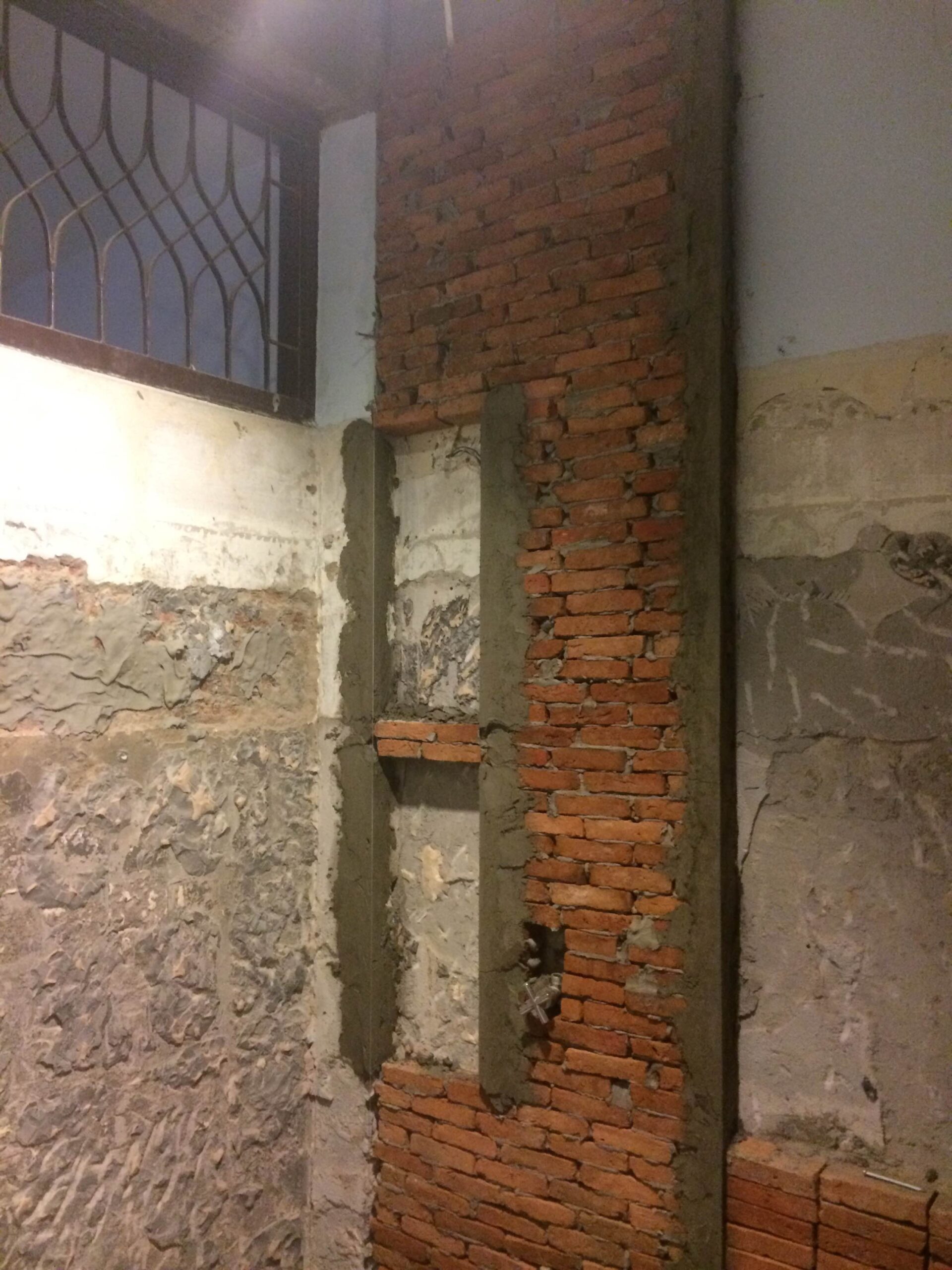ตำแหน่งการก่ออิฐเสริมบริเวณที่อาบน้ำครับ เอาให้สุดแนวชนท้องคานชั้นบนไปเลยสวยดี