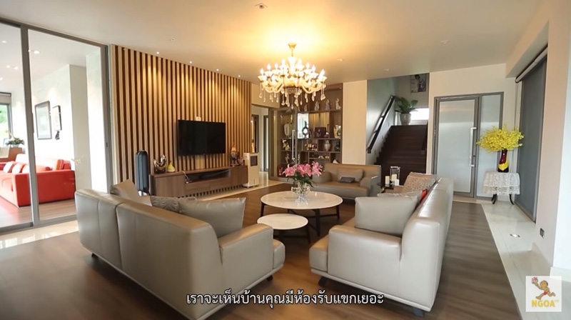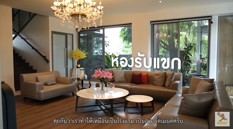 ห้องรับแขกสุดหรู โดดเด่นด้วยแชนเดอร์เลียกลางห้อง