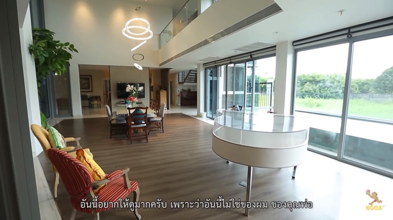หนุ่มโต๋เผยว่า ตั้งใจออกแบบบ้านหลังนี้ให้มีลักษณะเหมือนโรงแรม คือมีส่วนกลางและล้อบบี้ชั้นล่าง ส่วนชั้นบนก็จะเป็นพื้นที่อยู่อาศัยของสมาชิกในครอบครัว ซึ่งก็จะแยกโซนเพื่อความเป็นส่วนตัวของสมาชิกแต่ละคน