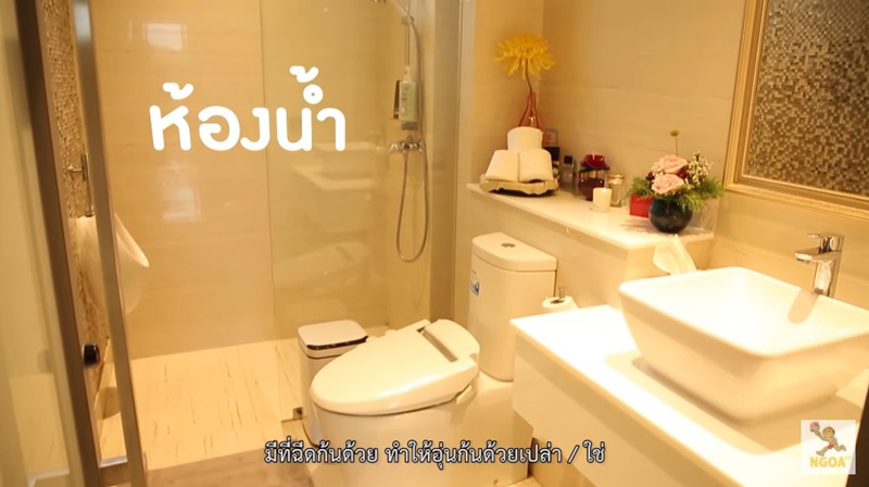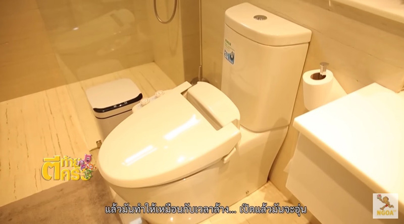 ด้านข้างของห้องอัดเสียงก็จะเป็นห้องน้ำสุดไฮเทค มีระบบทำความอุ่นเหมือนกับชักโครกของญี่ปุ่น