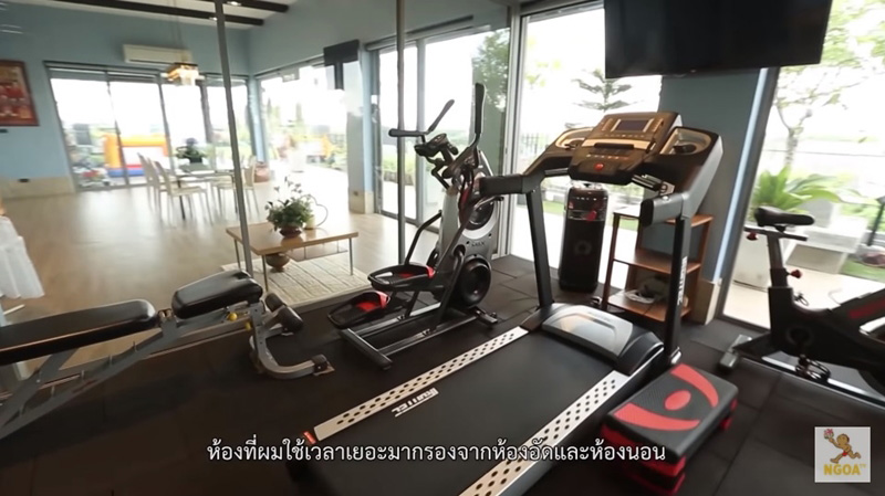 อีกฝั่งหนึ่งของชั้นดาดฟ้านั้นเป็นฟิตเนสที่มีอุปกรณ์ครบครัน ให้ทุกคนสามารถใช้งานได้อย่างเต็มที่อีกด้วยครับ