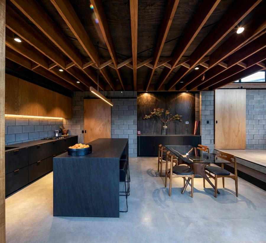 ถัดจากห้องนั่งเล่นจะเป็นห้องครัวที่เพิ่มรายละเอียดการตกแต่งด้วยโทนสีดำ จึงทำให้ห้องนี้มีเสน่ห์มากยิ่งขึ้น ภายในมีสิ่งอำนวยความสะดวกในแบบโมเดิร์นที่ครบครัน