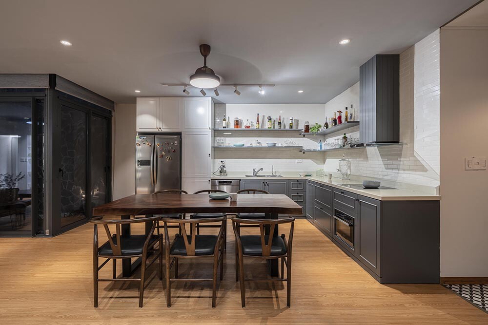 ภายในห้องครัวจะเป็นครัวแบบโมเดิร์น จึงให้รูปลักษณ์ที่ทันสมัย สามารถใช้งานได้ดี แต่ด้วยการที่ยังคงมีธีมการตกแต่งในโทนสีน้ำตาล จึงทำให้ครัวแห่งนี้ยังคงดูอ่อนโยนด้วย