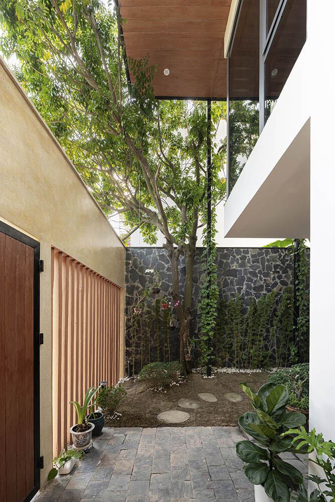 พื้นที่ข้างบ้านจะถูกตกแต่งเป็นสวนหย่อมเล็ก ๆ เพื่อเป็นพื้นที่สีเขียวของบ้าน พร้อมกันเป็นพื้นที่สำหรับพักผ่อนในวันว่าง