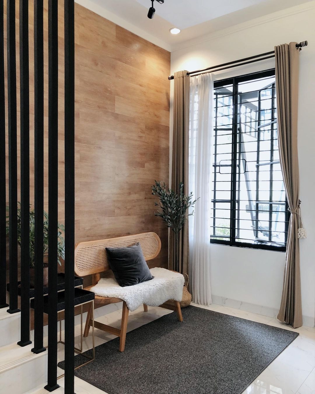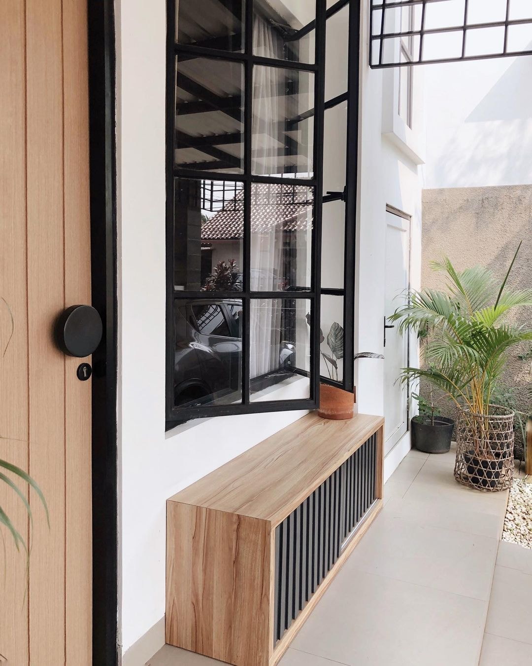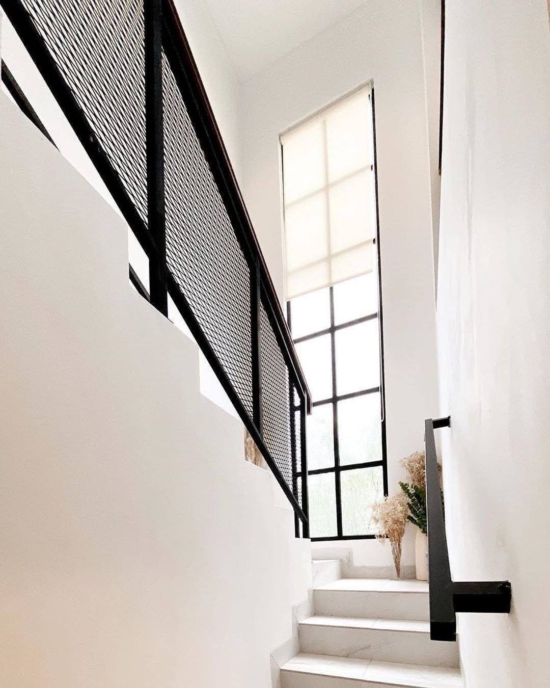 บริเวณชั้นบน จะเป็นส่วนที่ให้ความเป็นบ้านนอร์ดิกได้ชัดเจนที่สุด นอกจากนี้ยังมีการติดตัั้งหน้าต่างกรอบเหล็กที่ให้กลิ่นอายแบบอินดัสเทรียลเอาไว้อีกด้วย เพื่อให้บ้านสามารถถ่ายเทอากาศได้ดี