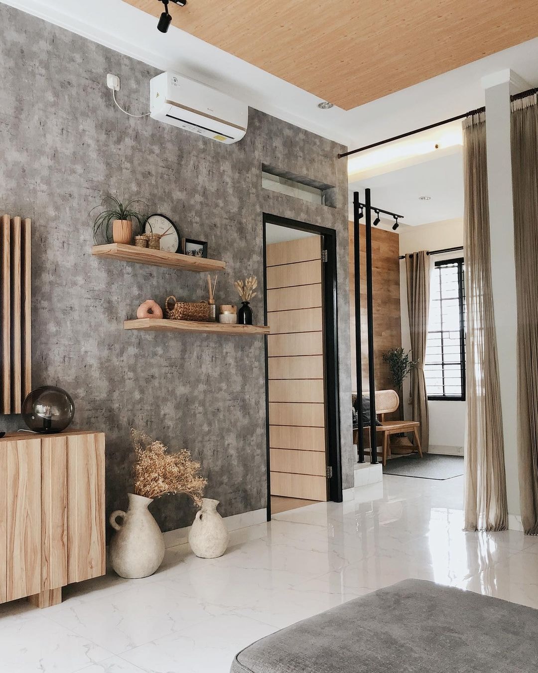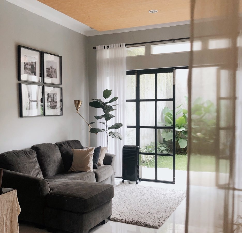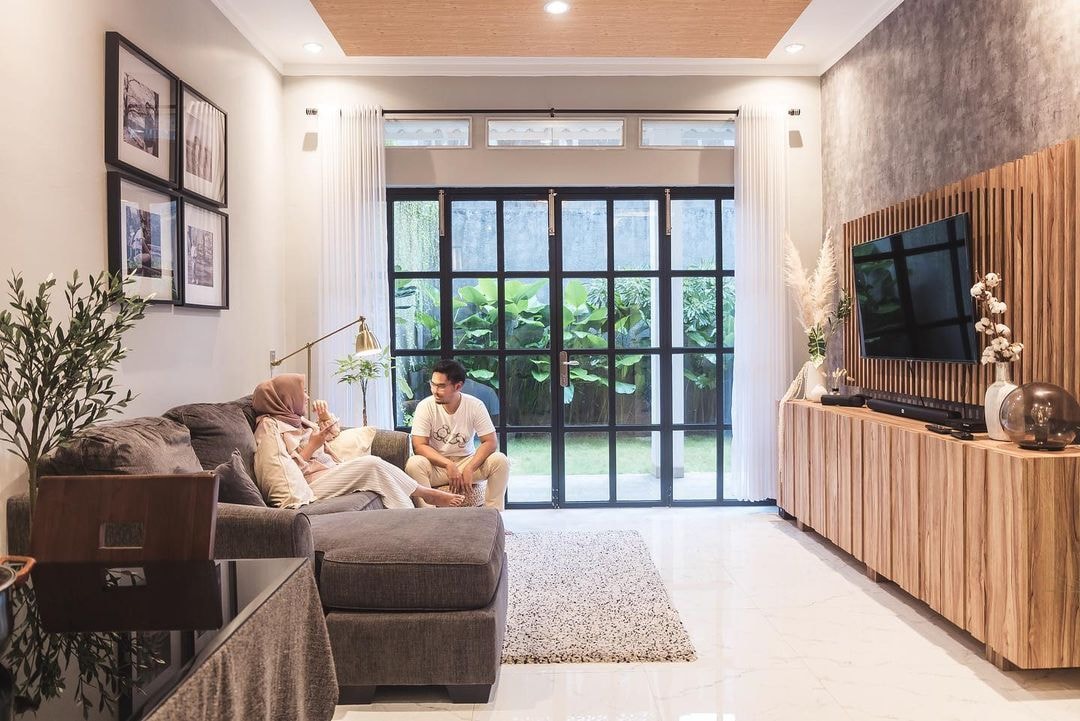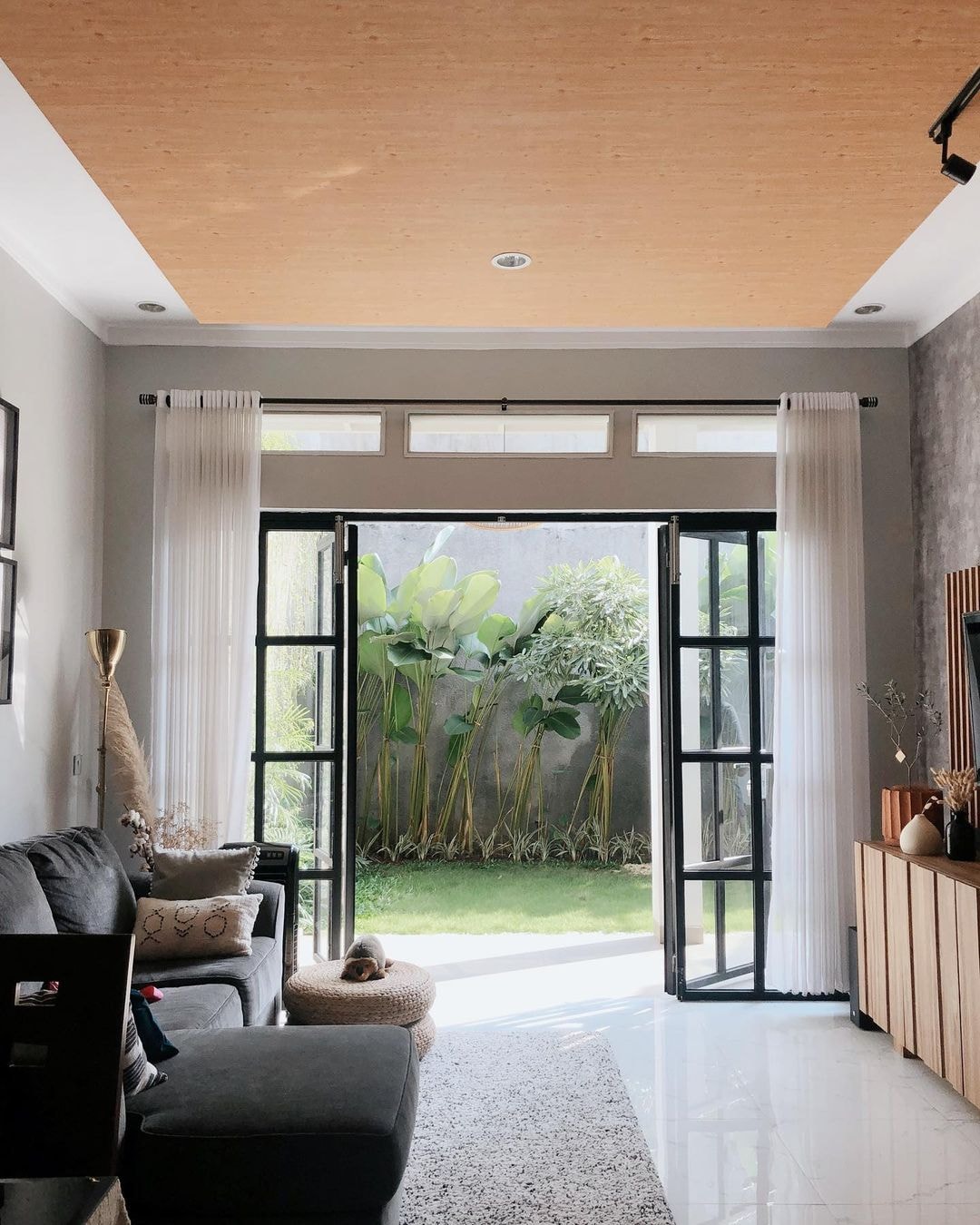 เมื่อเราเข้ามาภายในบ้าน ก็จะพบกับพื้นที่ห้องโถงหลังที่ถูกตกแต่งให้เป็นมุมนั่งเล่น ซึ่งจะเชื่อมต่อไปยังพื้นที่สวนหย่อมหลังบ้านอีกด้วย