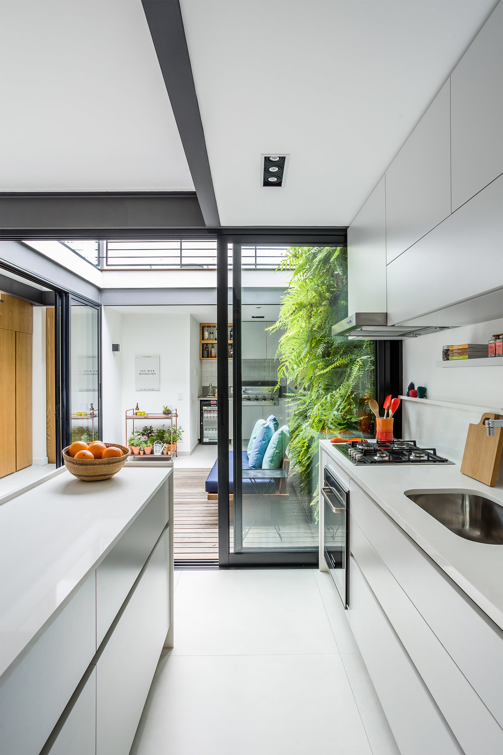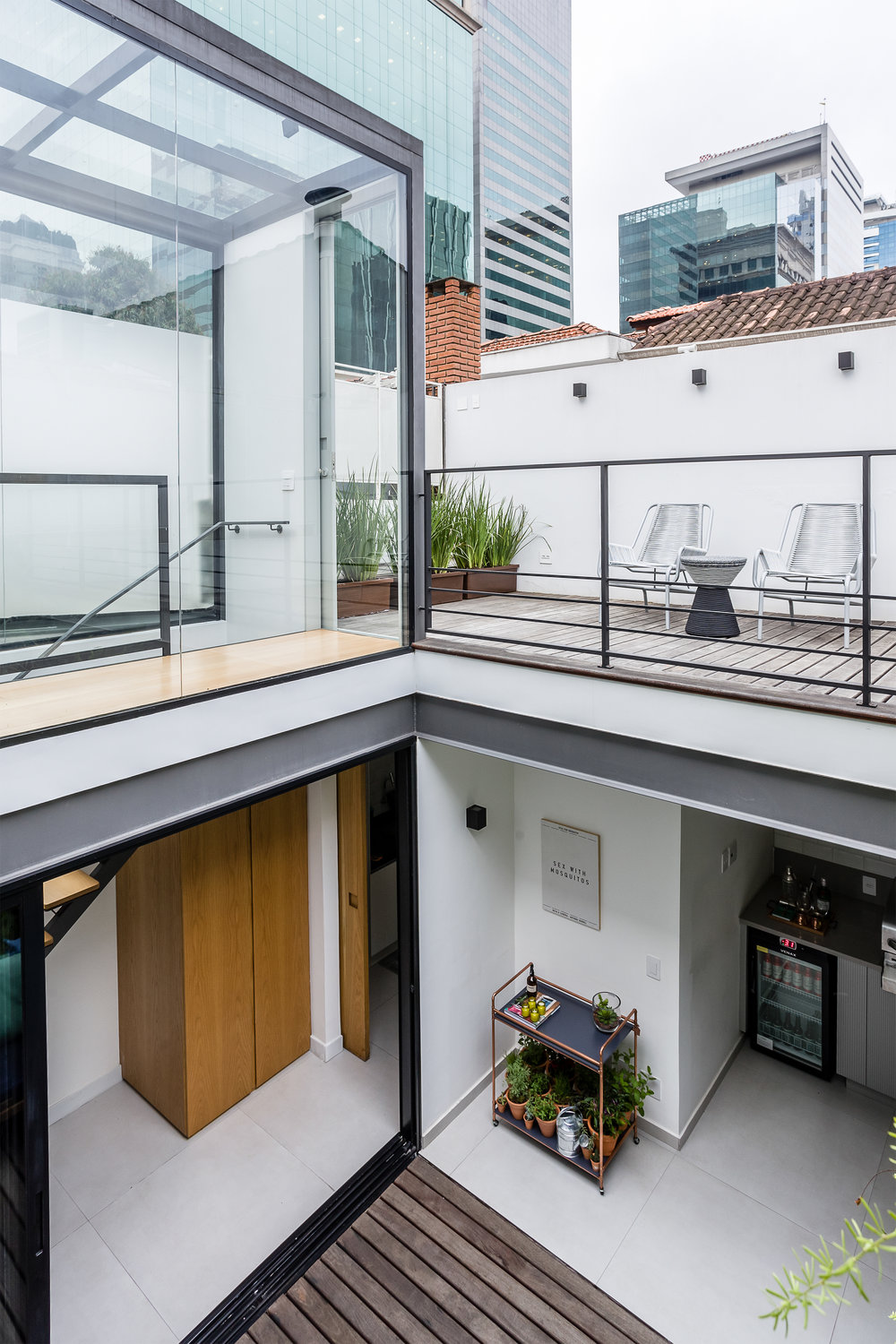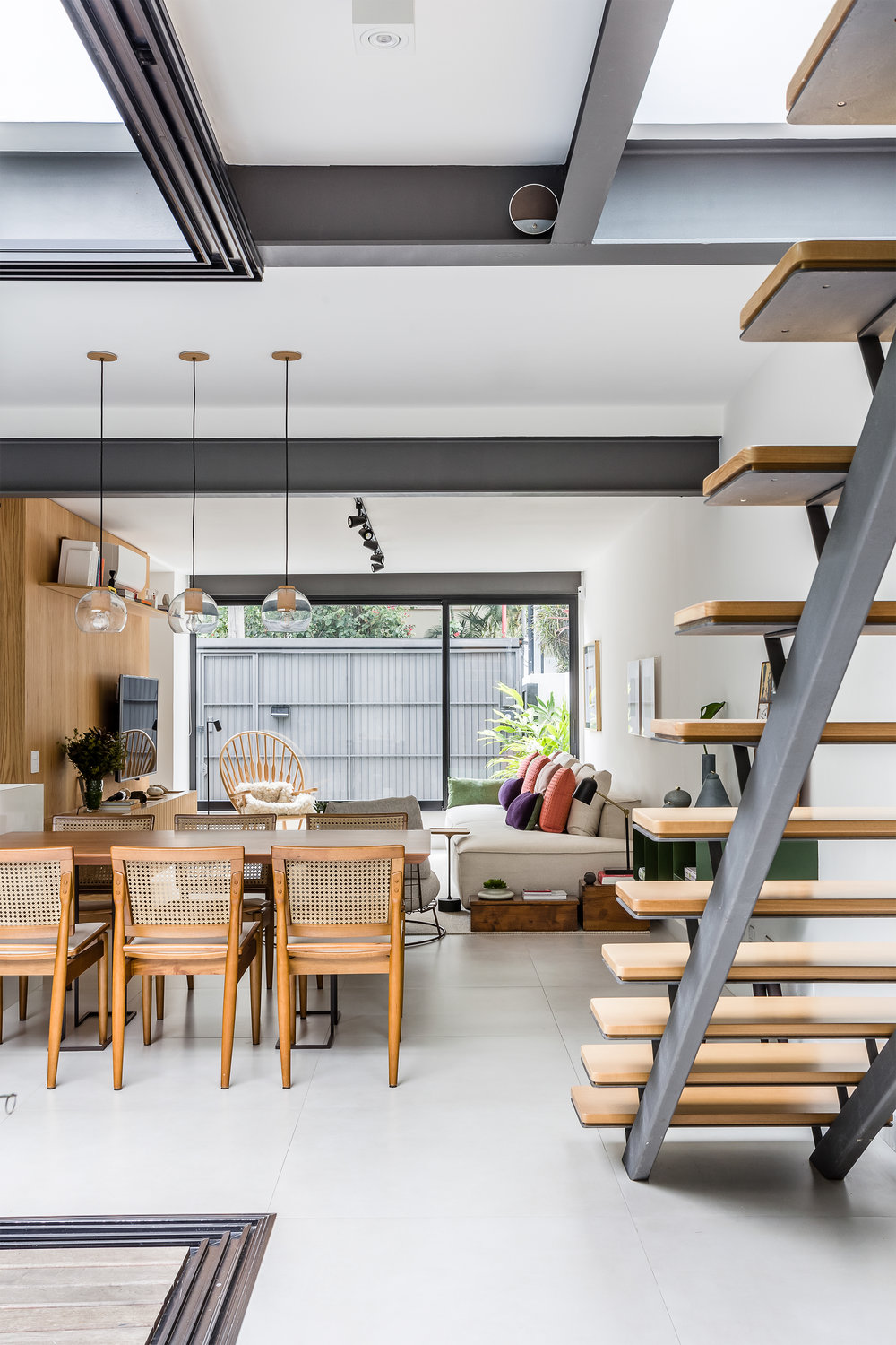 นอกจากนี้ ตรงพื้นที่เปิดโล่งแห่งนี้ ยังมีบันไดที่เชื่อมต่อไปยังพื้นที่ดาดฟ้าที่ถูกปรับปรุงใหม่ ซึ่งก็กลายเป็นพื้นที่พักผ่อนแห่งใหม่ของบ้านด้วยเช่นกัน