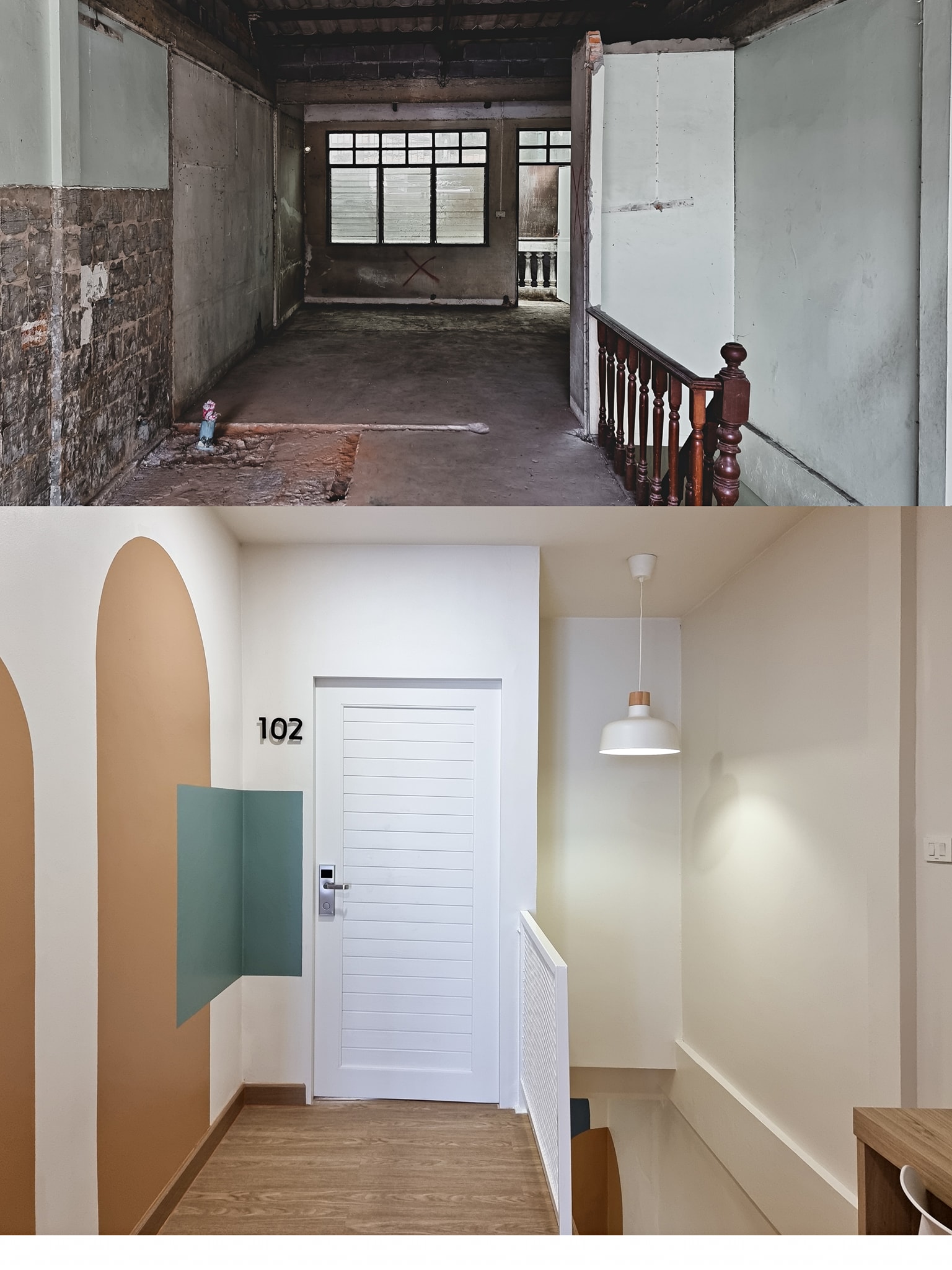 ภาพเปรียบเทียบระหว่างบ้านหลังเก่าก่อนการเข้ามาปรับปรุง เมื่อเทียบกับหลังปรับปรุงแล้ว จะเห็นได้ว่ามีความเปลี่ยนแปลงที่ค่อนข้างมากเลยทีเดียว