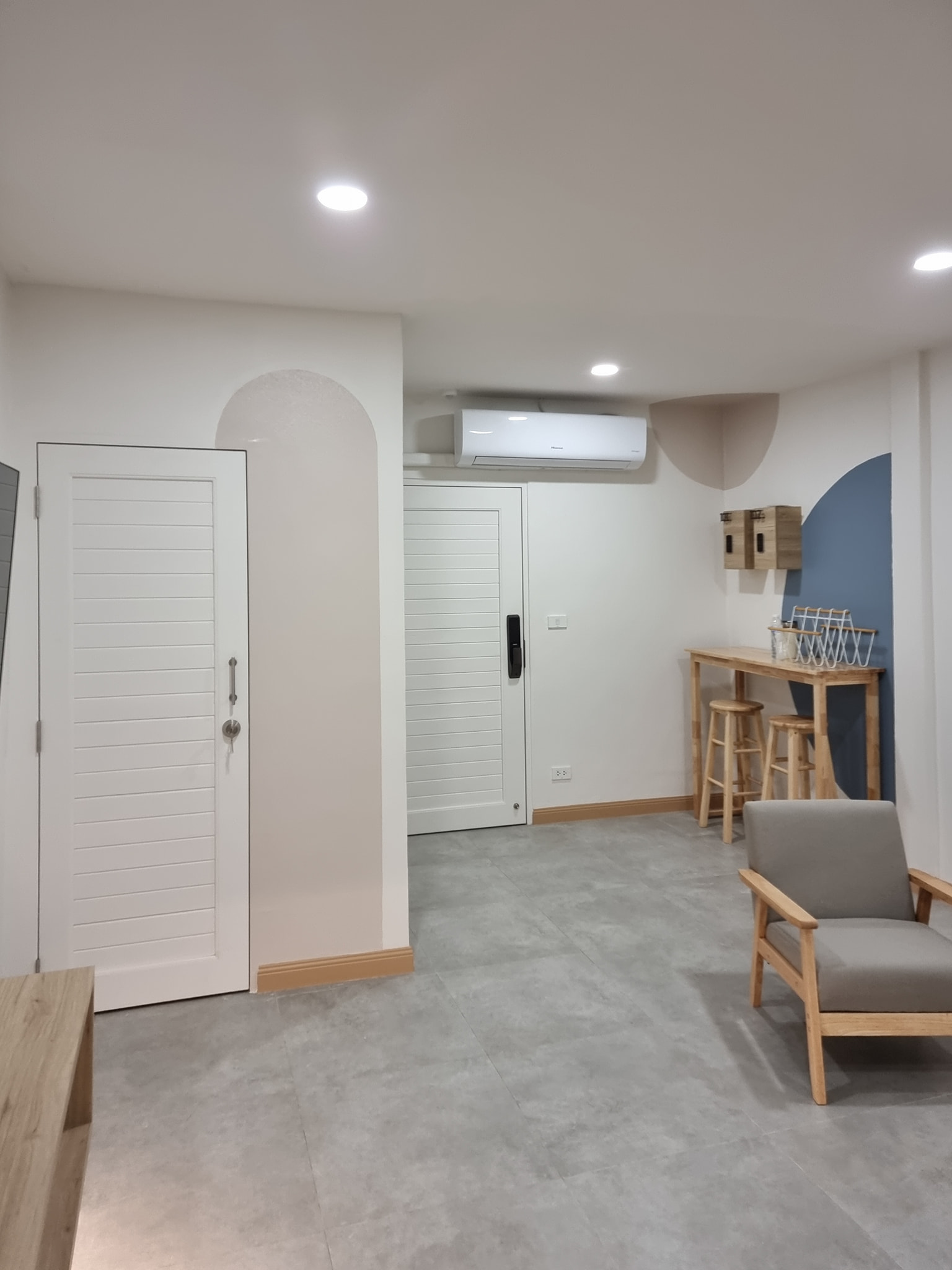 ชั้นสองถูกทุบผนังออก เพื่อให้สามารถขยายพื้นที่ใช้สอยให้กว้างขึ้น ปิดท้ายด้วยการตกแต่งแบบมินิมอล