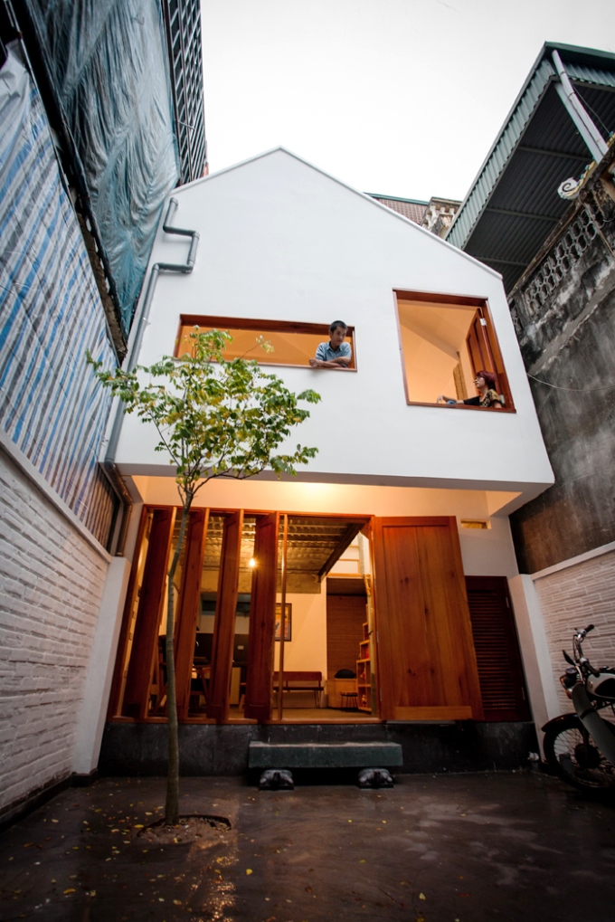 ลักษณะตัวบ้านจะป็นทาวน์เฮาส์สองชั้นตั้งอยู่ในพื้นที่แคบ ตกแต่งบริเวณทางเข้าด้วยหน้าต่างไม้เรียบๆกับพื้นหิน บริเวณชั้นสอง ภายนอกจะเป็นห้องยื่นออกมาโดดเด่นด้วยสีขาวและกระจกใสบานใหญ่สำหรับรับแสงและชมวิว