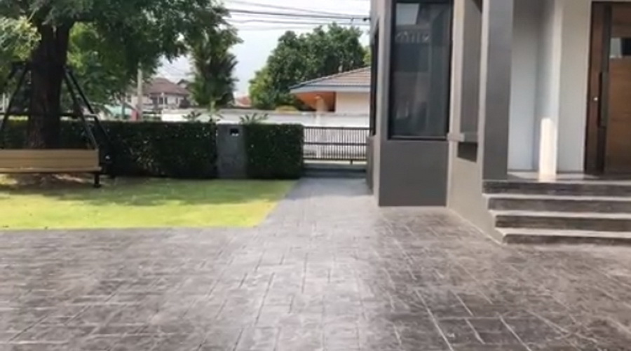 บริเวณนอกตัวบ้านเทพื้นคอนกรีตแบบมัน เพื่อให้มีลานกว้างในน้องบีลีพสามารถเล่นสนุกและออกกำลังกายได้อย่างเพลิดเพลิน