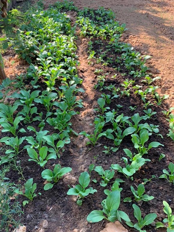 แปลงปลูกผักของสาวตั๊กแตน มีพืชผักที่รอเจริญเติบโตมากมาย