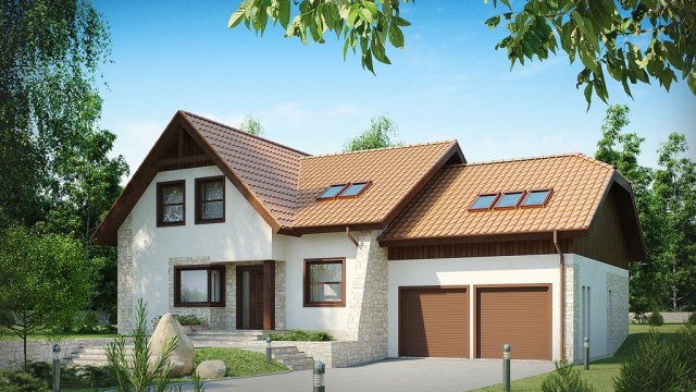 ตัวบ้านโครงสร้างคอนกรีต ออกแบบแบบแปลนบ้านที่เรียบง่าย เป็นสองชั้น และตกแต่งด้วยผนังปูนเสริมลูกเล่นด้วยไม้ในรอบๆ บ้าน จับคู่กับหลังคาทรงจั่วหักมุม ดูสวยงามและภูมิฐานในเวลาเดียวกัน