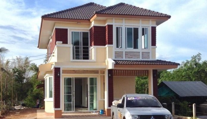 ลักษณะเป็นแบบบ้านสองชั้น มาพร้อมหลังคาทรงปั้นหยาสีน้ำเงินเข้ม ผนังใช้สีครีม ผสมผสานการตกแต่งด้วยไม้ฝาสีน้ำตาลแดง แซมด้วยสีขาวให้ดูละมุนมากขึ้น พร้อมโรงด้านหน้าบ้านโล่งกว้างสามารถจัดมุมสวนเล็กๆ ได้เป็นอย่างดี