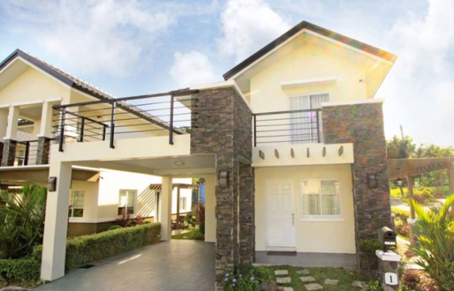 ตัวบ้านโครงสร้างคอนกรีต ดีไซน์รูปทรงกล่อง มีส่วนยื่นหดของคอนกรีต โดดเด่นด้วยเสาลอย เกิดเป็นโรงจอดรถในชั้นล่าง ให้ชั้นบนเป็นดาดฟ้า หรือเฉลียงนั่นเอง ตกแต่งด้วยหินทรายเพิ่มเติม เสริมความภูมิฐานมากชึ้น