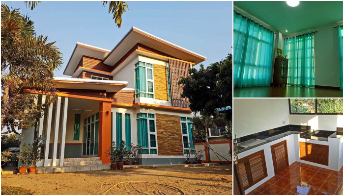บ้านสองชั้นสไตล์โมเดิร์น ดีไซน์สะดุดตา พร้อมมุมพักผ่อนครบครัน 3 ห้องนอน 2 ห้องน้ำ