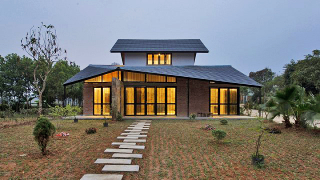 บ้านโครงสร้างคอนกรีต และมีงานโชว์โครงสร้างเหล็กจำนวนมาก มองเห็นได้ชัดตั้งแต่ภายนอก มีจังหวะลดทอนของตัวผนัง ดูสวยงามแบบสมัยใหม่ ช่องแสงจากกระจกชิ้นใหญ่ เน้นเปิดมุมมองสู่ภายนอก และนำเอาแสงธรรมชาติเข้ามาช่วยแก่ในบ้าน