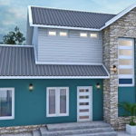 แบบบ้านสไตล์โมเดิร์นสองชั้นพร้อมดาดฟ้า ทรงกล่องสี่เหลี่ยม 5 ห้องนอน 6 ห้องน้ำ สำหรับครอบครัวใหญ่