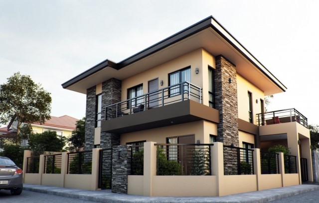 บ้านโครงสร้างคอนกรีต รูปทรงกล่องเรียบง่าย ใช้การเจาะช่องแสงเป็นตัวกำหนดไฮไลท์ของบ้าน และยังตกแต่งด้วยไม้และหินทรายตามผนังบ้านเพียงเล็กน้อย เน้นตามคอนเซ็ปของบ้าน หลังคาทรงปั้นหยา ที่ให้ความภูมิฐานแบบเต็มๆ