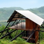 เลือกใช้โครงสร้างคอนกรีต ที่เน้นความแข็งแรงจากวัสดุและรูปทรง จากไม้ตีชิดทั้งหลัง ออกแบบให้รู้ถึงความภูมิฐานที่มีอยู่ และเสริมด้วยหลังคาจั่ว ไม่รบกวนแบบบ้านแต่อย่างใด ตกแต่งด้วยกระจกเป็นจำนวนมาก ช่วยนำเอาแสงเข้าสู่ตัวบ้าน และให้ภายในได้เทควิวสู่ภายนอกได้ดี