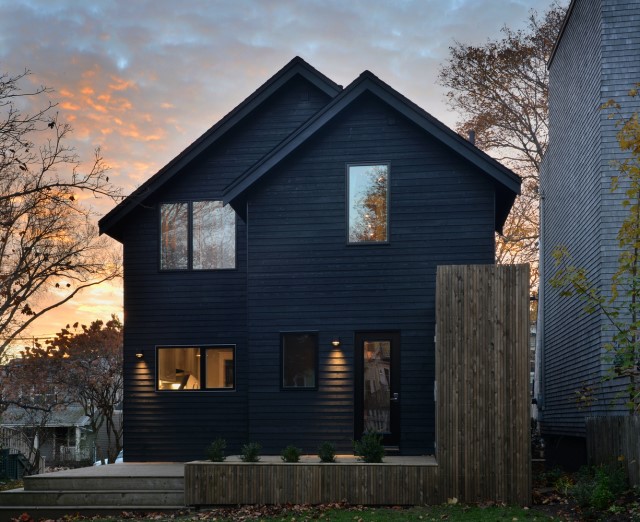 ตัวบ้านโครงสร้างคอนกรีต ออกแบบให้เด่นชัดกับงานโครงสร้าง เป็นบ้านสองชั้นรูปทรงกล่องเรียบง่าย และตกแต่งด้วยโทนสีดำทั้งหลัง และวัสดุจากไม้เช่นกัน แทรกการใช้วัสดุสมัยใหม่อย่างแผ่นเมทัลชีท ในการมุมหลังคา
