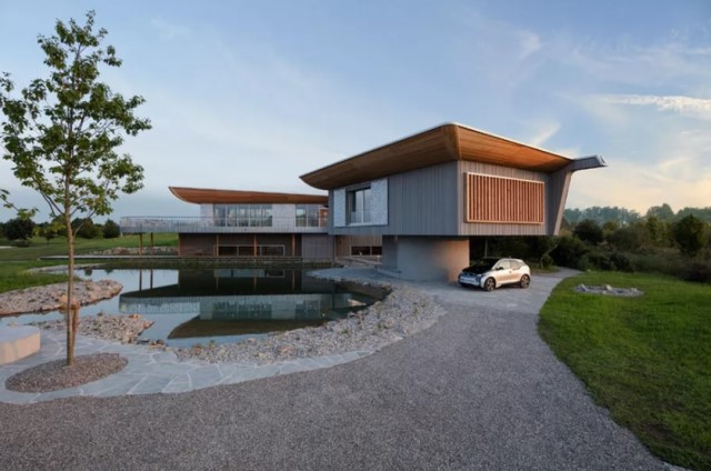 บ้านสองชั้นยกใต้ถุน สไตล์โมเดิร์นทูโทน ท่ามกลางบรรยากาศบนเนินเขา